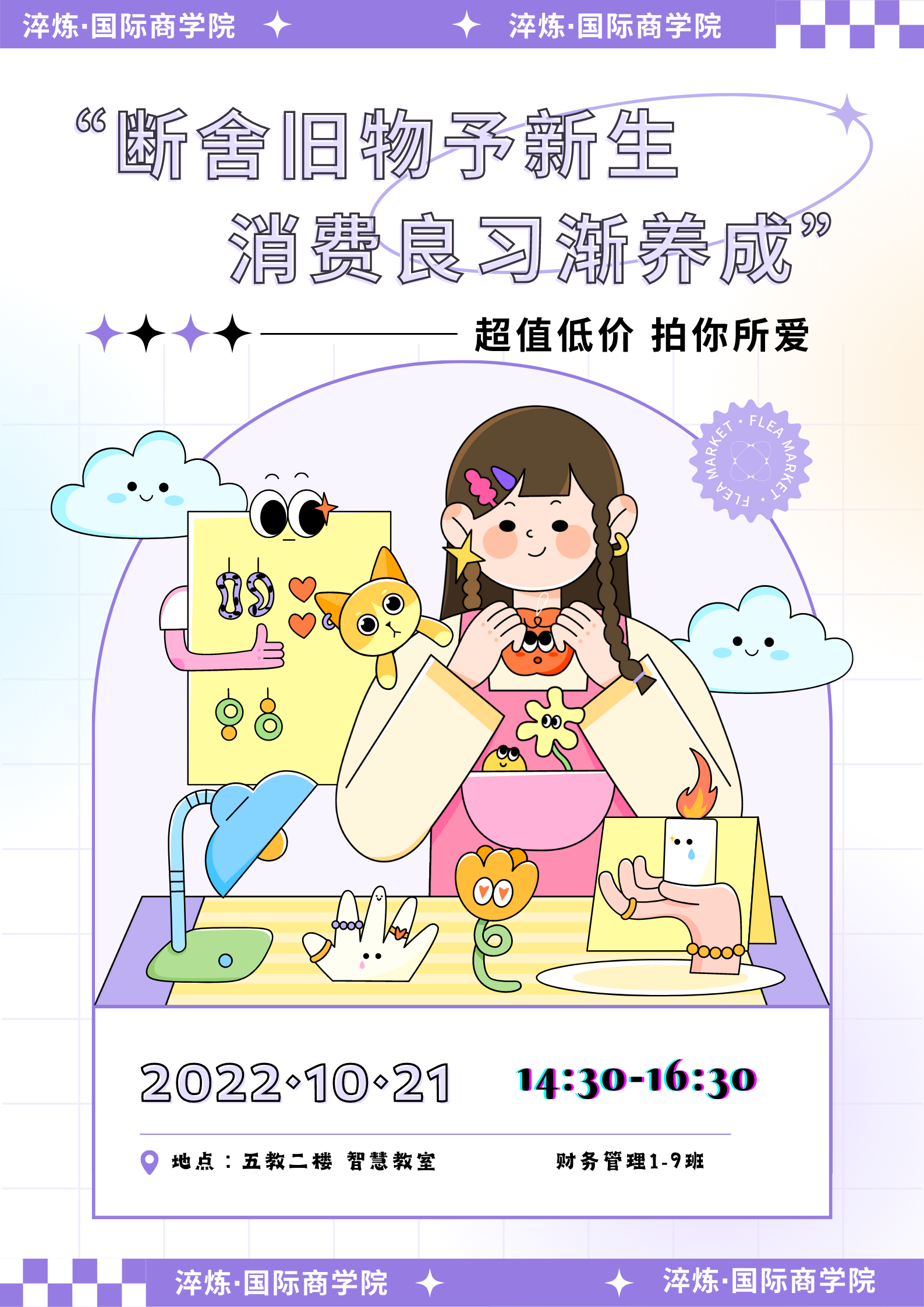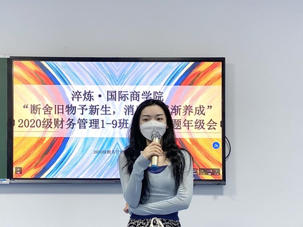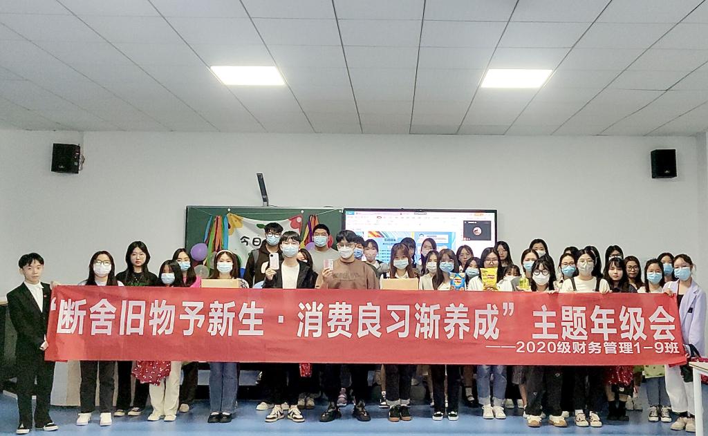 近年来,随着数字经济的流行,相比于实体货币带来的真实感,人们在数字化消费时,对于消费尺度的把握逐渐模糊,进而频频出现超前消费、冲动消费等问题,陷入消费陷阱的恶性循环。为了警醒同学们对自我消费习惯进行反思,同时帮助同学们树立正确的消费观、养成良好的消费习惯,淬炼·国际商学院2020级财务管理专业1-9班于10月22日在五教智慧教室开展了“断舍旧物予新生•消费良习渐养成”主题年级会,将同学们的闲置物品通过交换分享、趣味拍卖等方式创造二次价值,以寓教于乐的方式培养良好的消费观。此次年级会应疫情防控要求,以“线下+线上”相结合的方式进行。