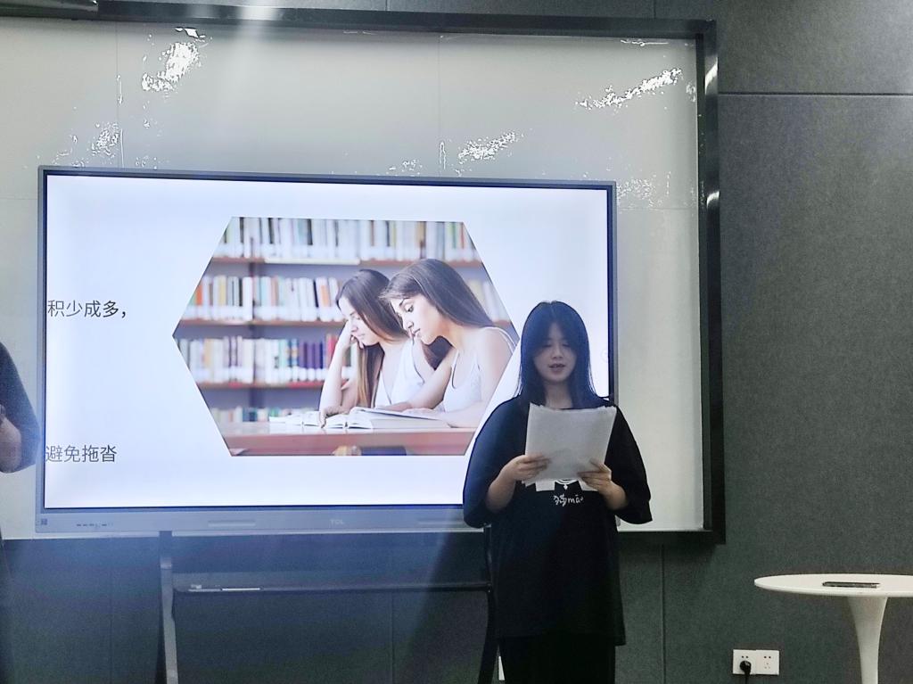 正值十八九岁的同学们拥有了“大学生”的身份,但大家扮演的角色又不仅仅是学生,是个人,是子女,是班级的一份子,更是一个肩负着责任与担当的成年人。合理的人生规划,有益于同学们的全面发展,良好的习惯,更是今后人生路上的强大助力。结合一个月以来同学们在学习生活中的种种表现,主持人和班委一起同大家分享了应具备的习惯,通过讲解呼吁大家不要忽略生活的点滴,突出良习的重要性,以细节决定成败。