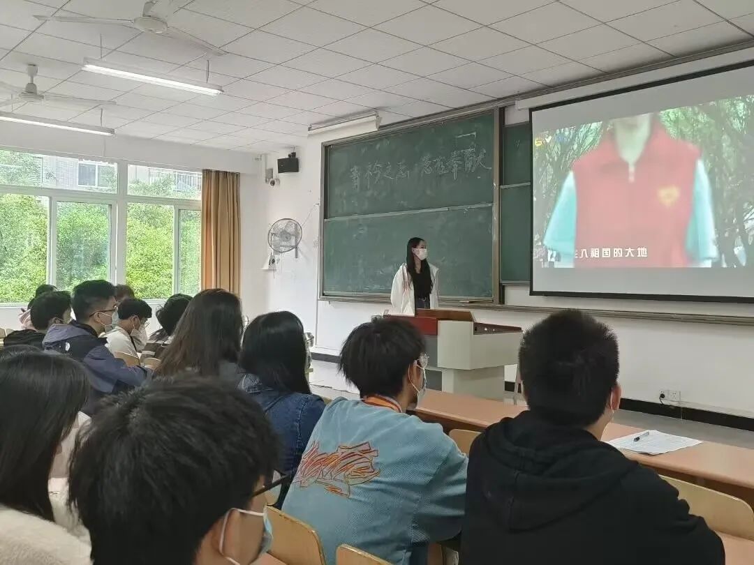 为提升班团干部对志愿活动方面的了解,补齐志愿知识短板,提升团支部的建设能力,淬炼•国际商学院团总支组织部于2022年10月14日在5105举行以“青衿之志•志在奉献”为主题的团干部培训会第二期暨学长面对面第一期活动,为此特别邀请到重庆移通学院移通志愿之星张鑫学姐以及淬炼·国际商学院团总支学生副书记陈建峰。张鑫学姐就“遇见”“接力”“蜕变”三个主题讲解了自己与志愿的故事;陈建峰学长对团干部工作中出现的问题进行指正说明,并对基础日常工作进行一定的规范。