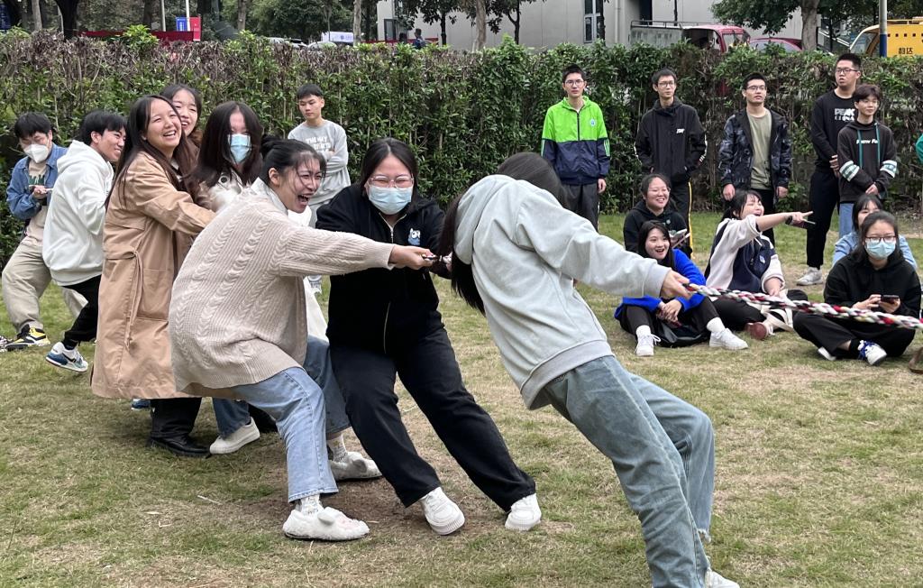 一根绳子,两个队伍,162个不服输的灵魂汇聚在同一块草坪上。在一声声“一,二 一,二”的呐喊声中,每一位队员都拼尽了全力,有的人脸憋的通红,有的人呲着牙,咧着嘴在较劲。欢呼声、加油声响彻了整个草坪,这种氛围感染了整个现场,增强了淬炼·国际商学院二届二任学生组织的凝聚力。
