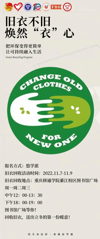 为响应二十大的号召,减少资源浪费,传播环保理念,同时,也为增强同学们的社会责任意识,积极弘扬奉献精神,倡议大家捐出自己的旧衣与爱心,实现资源的循环利用和爱的共享。淬炼·国际商学院青年志愿者协会组织的旧衣不旧,焕然“衣”“心”旧衣回收活动即将开始啦!