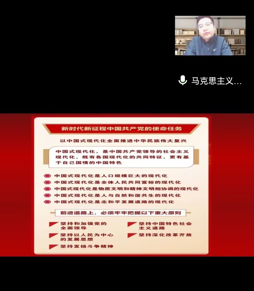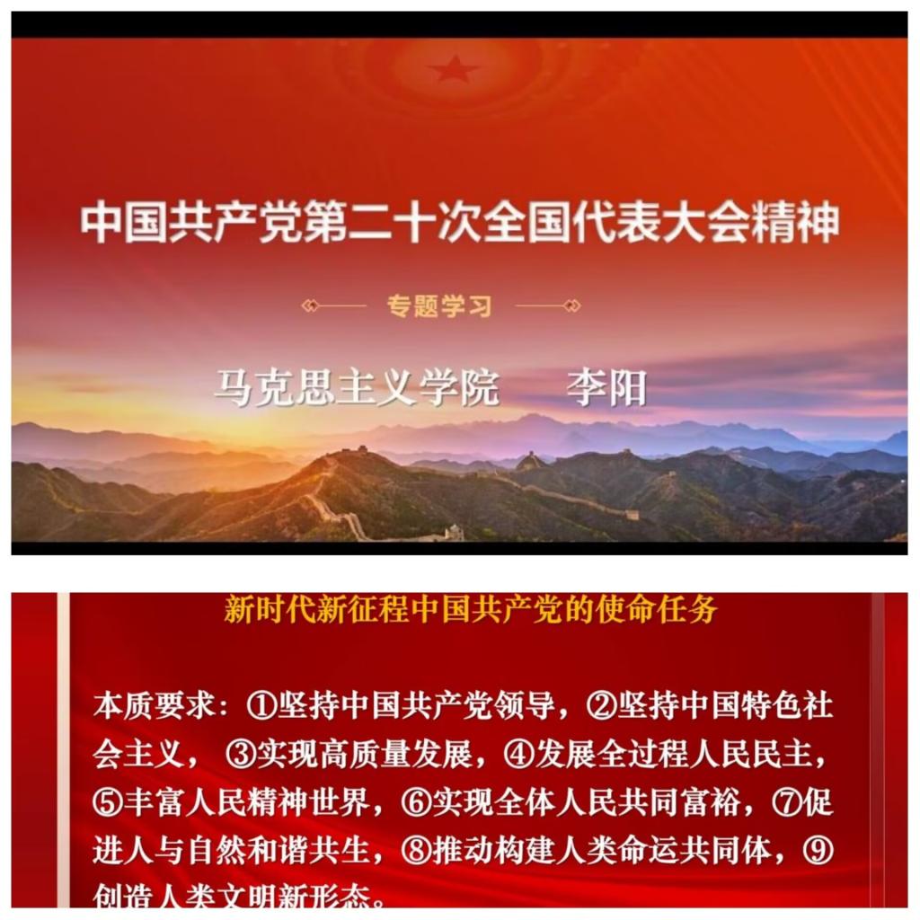 在会议的最后环节,主持人详细为大家讲述了二十大所召开的历史意义所在。党的二十大是在我国迈上全面建设社会主义现代化国家新征程、向第二个百年奋斗目标进军的关键时刻召开的一次十分重要的大会,党的二十大担负起了全党的重托和人民的期待,从战略全局深刻阐述了新时代坚持和发展中国特色社会主义的一系列重大理论与实践问题,科学谋划了一个未来一个时期党和国事业发展的目标任务和大政方针,在党和国家历史上具有重大而深远意义。这是中国共产党在百年辉煌成就和十年伟大变革的高起点上创造新时代更大荣光的大会,具有特别的里程碑意义。
