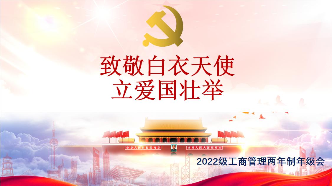 平凡铸就伟大,英雄来自人民。每一份伟大的成就,无不立足于平凡的岗位与工作,为了让同学们学会在疫情之下爱国,2022级工商管理4-10班于2022年11月23日召开了线上“致敬白衣天使,立爱国壮举”主题年级会。辅导员陈飞及公共关系处张栋老师受邀到场,与同学们一起“致敬白衣天使,立爱国壮举”。