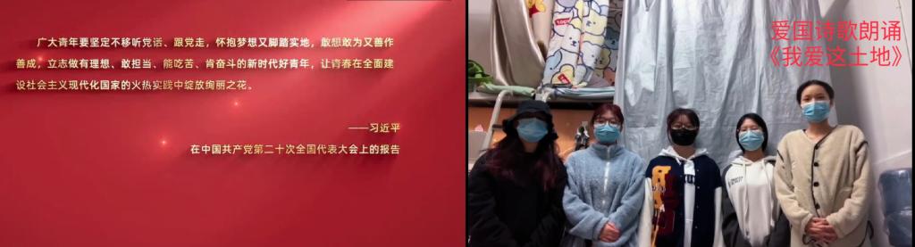 习近平总书记在二十大报告上指出,广大青年要坚定不移听党话跟党走,怀抱梦想又脚踏实地,敢想敢为又善作善成,立志做有理想有担当能吃苦肯奋斗的新时代好青年,让青春在全面建设社会主义现代化国家的火热实践中绽放绚丽之花。在年级会的最后环节,同学们朗诵《我爱这土地》用朗诵的方式表达出自己对祖国的热爱之情,爱国,始终是青春的底色,新时代的新青年生逢盛世,应当不负盛世。