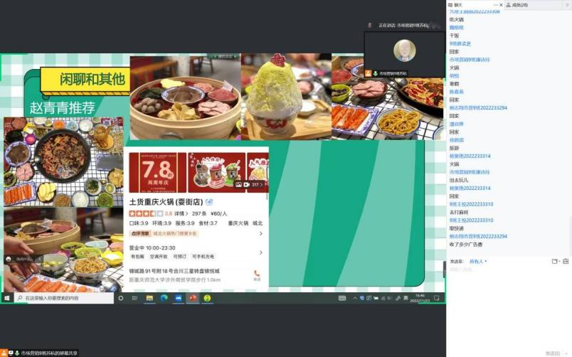 闲聊time,同学们积极连麦分享自己临时封控前的快乐时光,从美食到美景,同学们无话不谈,言语间充满了对解除封控的美好愿景。我们都相信,只要师生齐心协力,那一天很快就会来到。让我们并肩作战,各司其职,共同战斗在抗疫路上。