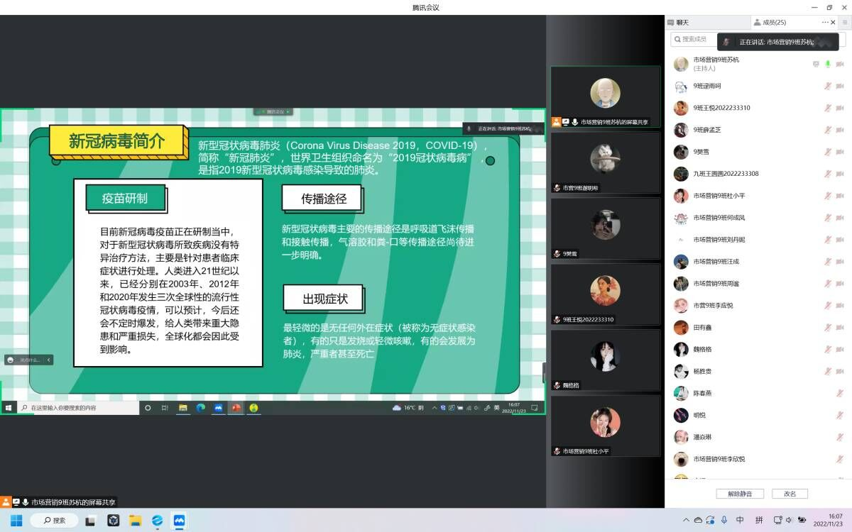 自我校11月8日实施临时管控以来,学校的教职工们都无微不至的照顾着我们。为致敬抗疫工作者,保持同学们抗疫热情,展现团结友爱的寝室风采和特色的班级风采,淬炼·国际商学院2022级市场营销专升本9班开展了“抗疫有我,青春有我”主题班会。