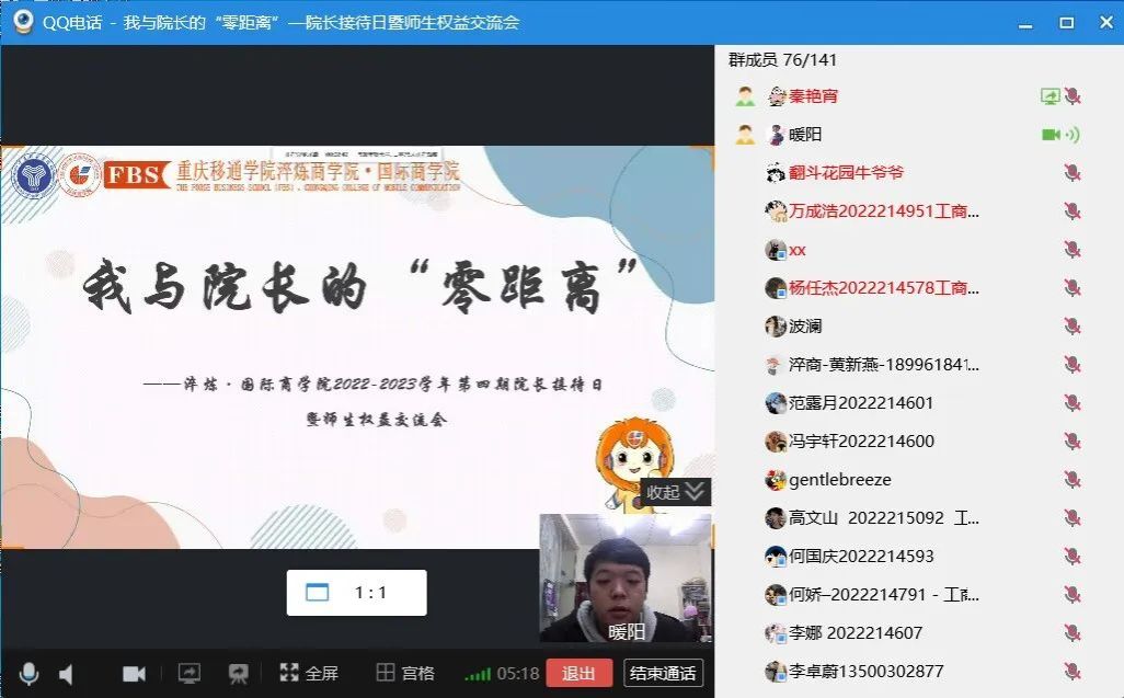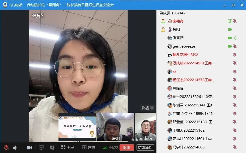 通过本次院长接待日暨权益师生交流会,院长和各位老师向同学们分享疫情下生活的技巧,解答同学们在生活和学习方面的困惑,引导同学们养成优良的生活和学习习惯。院长和同学们的有效沟通,拉近了院长和同学们的距离,有效缓解了各位同学的学习和生活压力,并为其指明方向。