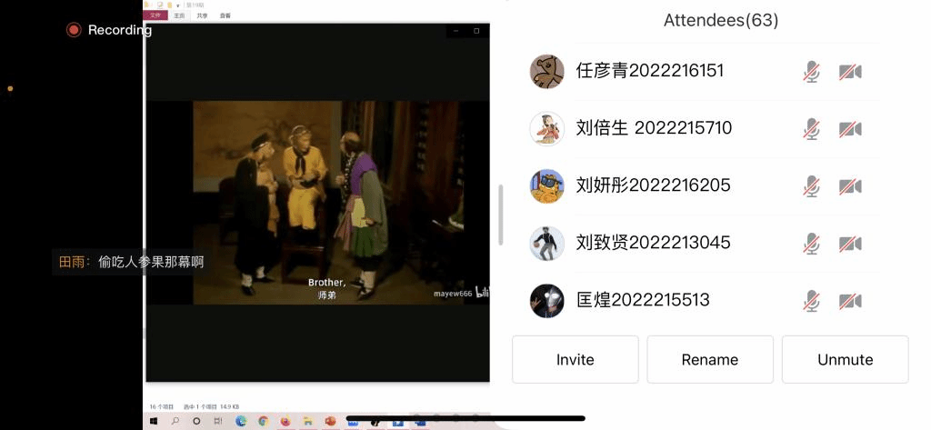 活动开始,主持人田宛玉老师先为同学们介绍此次配音活动的流程,同学们进入自由配音阶段。这个阶段出现了很多有趣的表情包,同学们看到自己感兴趣的表情包就会大胆打开麦克风,给表情包配音,整个会议室的气氛都活跃了起来。