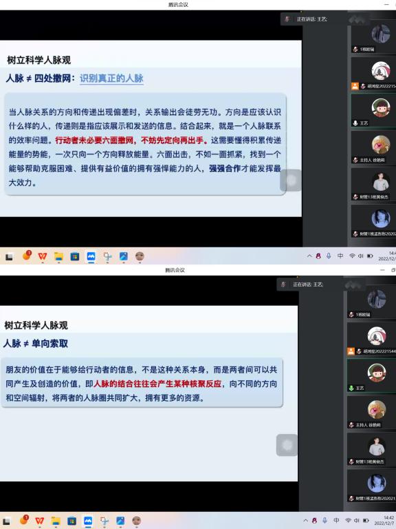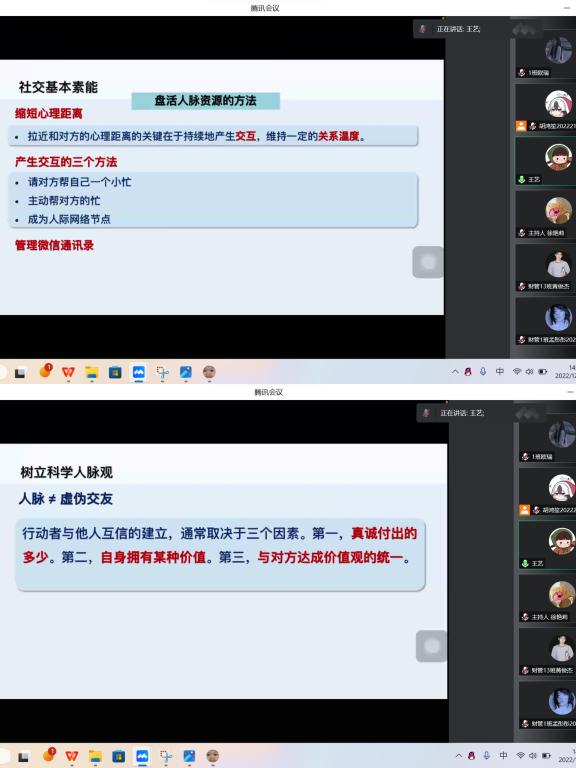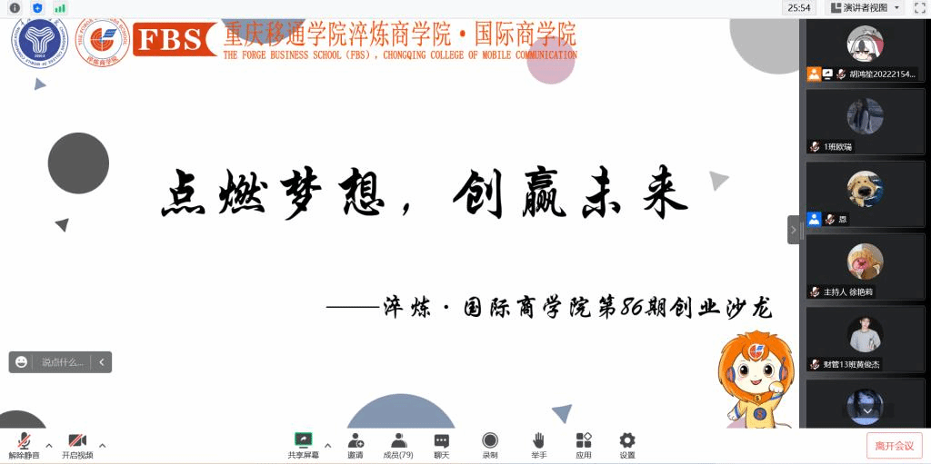 创业是在荆棘里闯出一条路,这条路充满未知与坎坷,为让商院学子在创业路上走得更加顺畅,淬炼·国际商学院就业助理团于2022年12月7日通过腾讯会议举办了“点燃梦想·创赢未来”——淬炼·国际商学院第86期创业沙龙。本次活动特别邀请到重庆移通学院通信与信息工程学院辅导员、创新创业导师库成员王艺老师。