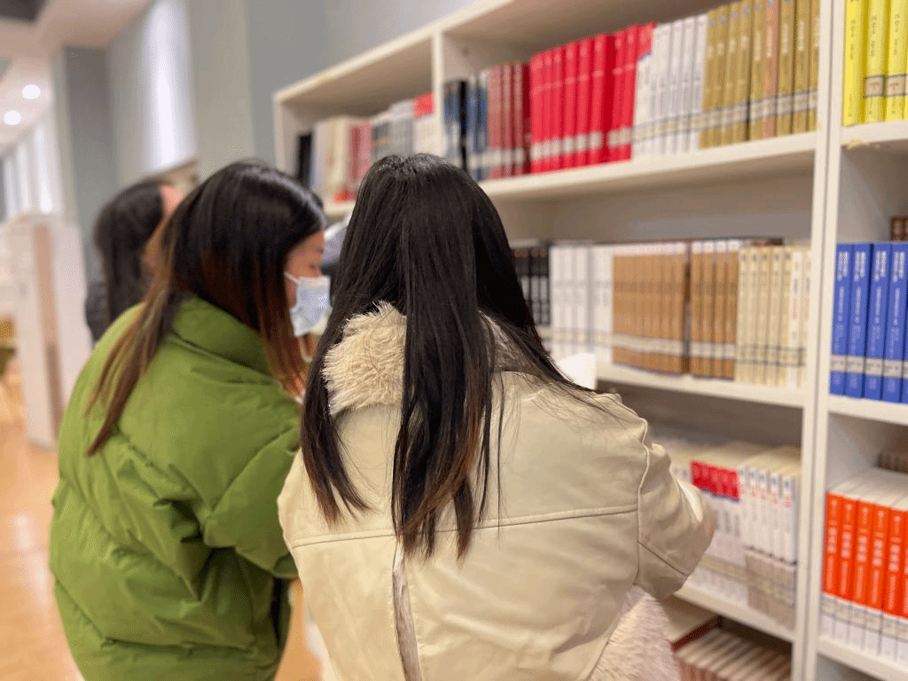 分享环节过后老师们移步商学院图书馆的藏书区,踱步在书架前手不释卷,沉浸在书中的世界,体悟大咖经历。老师们相互围坐,认真览阅着手中的大咖书籍。