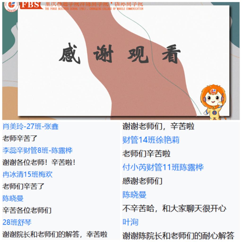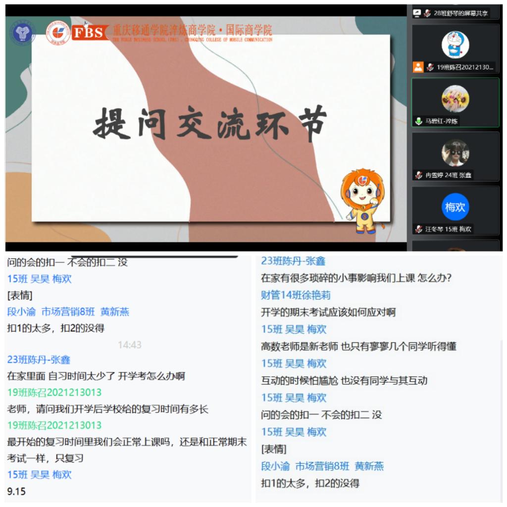 期末来临,一部分同学表示这半学期的网课学习中,自己在学习上用的时间比较少,学习的效率也不高,害怕不能顺利通过各科的期末考试。陈晓曼老师提出:居家上网课要有一种特别的“仪式感”,准备好上课所需的物品,调整到在校上课的状态。在家上网课还有一些不确定性因素,比如要帮家长做家务、家里有客人比较嘈杂等。就此,陈晓曼老师解答到,这需要同学们与家长做好沟通,并合理规划好时间,做一个时间规划师,将时间用在刀刃上。老师们提到想要在疫情之下提高网课的质量,不仅要注意时间安排,同时也要注重防疫,以此来提升学习与复习的效率。