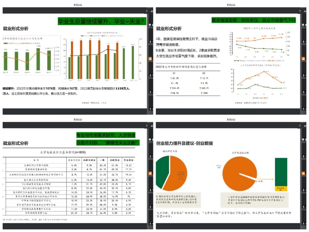 面对严峻复杂的就业环境,高校大学生就业形势不容乐观,造成这一局面的因素来自方方面面。讲座伊始,吴朝勇老师对目前就业形势进行分析,随着国家人口的不断增加、教育水平的不断提高,大学毕业生总量持续攀升,就业岗位出现供不应求的状况,加上历年积累的待就业毕业生,就业压力加大。吴朝勇老师指出,2022年上半年在国家宏观调控政策支持下,就业市场需求增速放缓,供给承压,就业市场下行,并且家庭、自身、专业、学校压力等多种因素也对大学生就业问题影响重大。吴朝勇老师还建议同学们:作为当代大学生在承受住压力的同时,更应该不断提升自我能力,适应就业大环境找到属于自己的就业路。