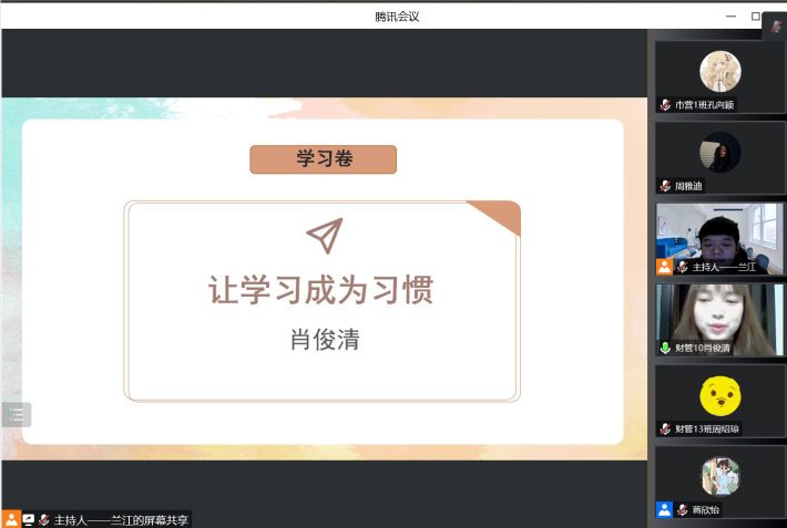 岁暮天寒,淬炼的学子已然归途家路,为让大家在史上最长寒假中平衡好自己的学习与生活,培养积极奋斗的向上意识,搞好“宅家学风建设”工作,2020级市场营销1-3班、财务管理10-14班、国际班于2022年12月14日19:30在腾讯会议开展了“宅家·你卷了吗”主题年级会。本次年级会特别设立了线上“云家访”环节,诚挚邀请到多位学生家长参与,实现家校联动,成为了首次家长和学生共同参与的年级会。