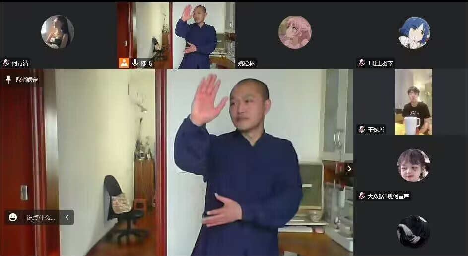 为了使同学们在居家网课期间也能多锻炼、增强体质预防病毒感染。在2022年12月20日下午四点,由异科导师陈飞老师在群课堂开展主题为“积极防疫,由内而外”的线上会议主题,《黄帝内经》云:恬淡虚无,真气从之;精神内守,病安从来。积极让同学们动起来,讲解及展示太极招式,在家也能轻松锻炼。