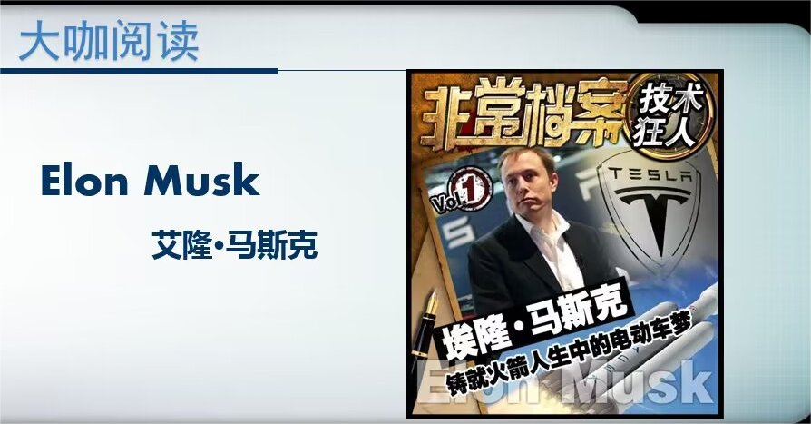中场休息期间,陈飞老师简单地进行了一次读书分享,书籍内容中的埃隆·马斯克,是漫威电影钢铁侠原型之一,讲述了他的传奇一生。