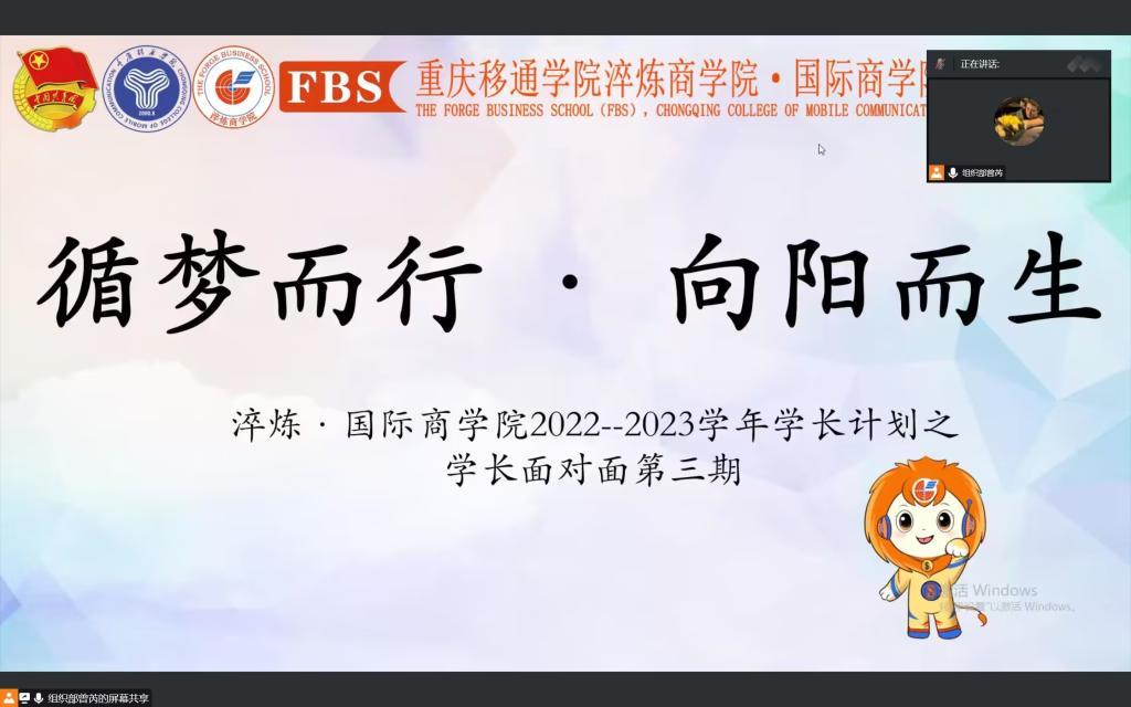 “少年强则国强”身为当代新青年、身为祖国的新一代砥柱,除去不断累积的丰富的学术知识,强其体魄,壮其灵魂,以坚实饱满之姿昂首担起青年的职责也在青年的责任之内。为贯彻执行我校完满教育全面发展的理念,强健体魄,丰富自身,提升自我,淬炼·国际商学院团总支组织部在2022年12月21日于腾讯会议线上举办了循梦而行·向阳而生——淬炼·国际商学院2022-2023学年学长计划之学长面对面第三期。