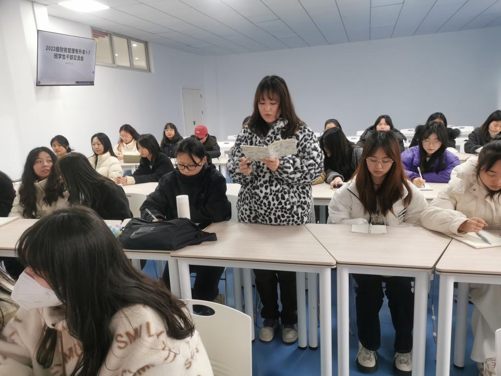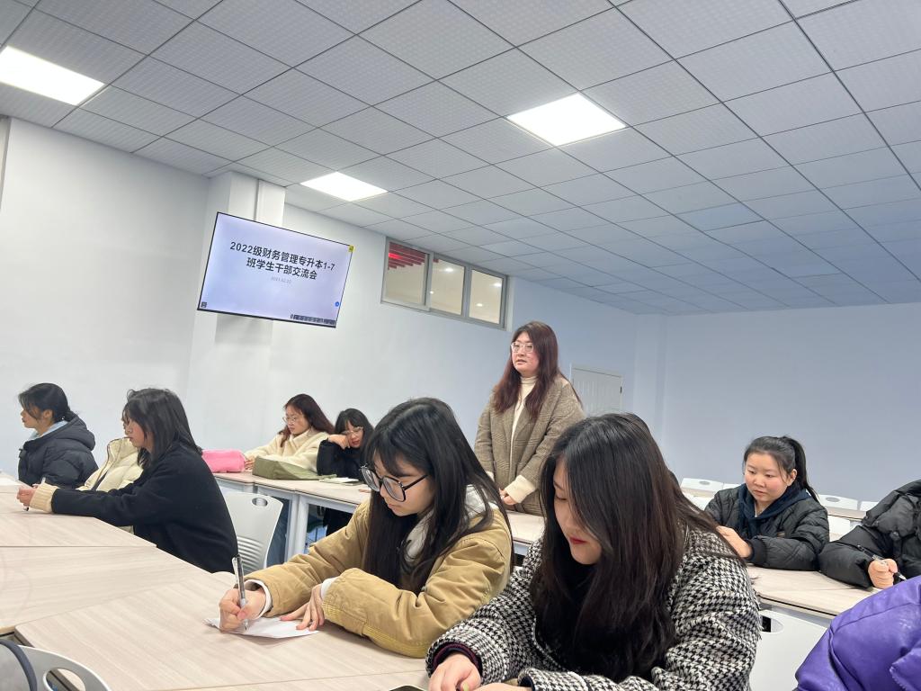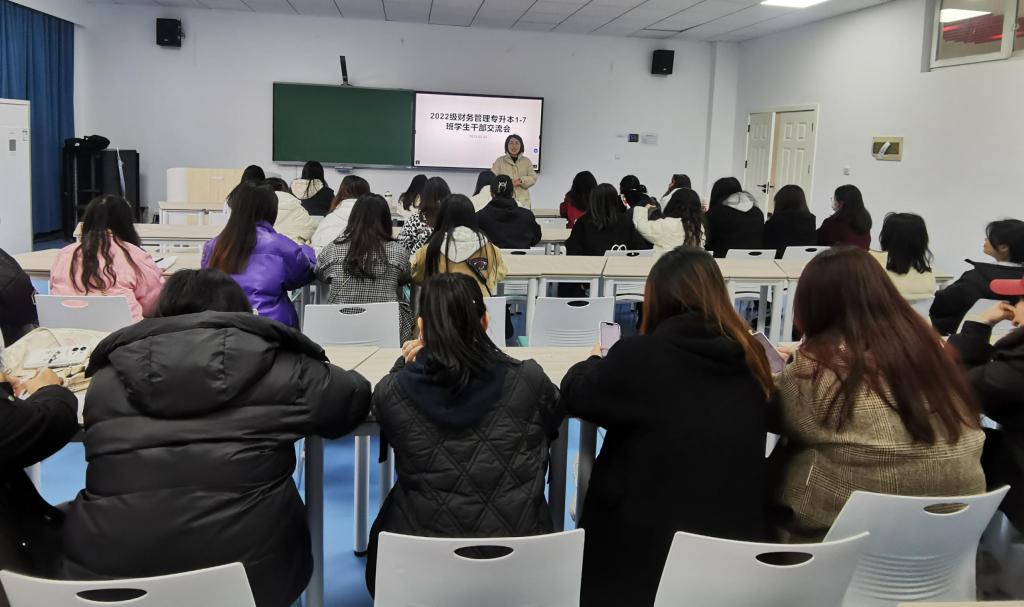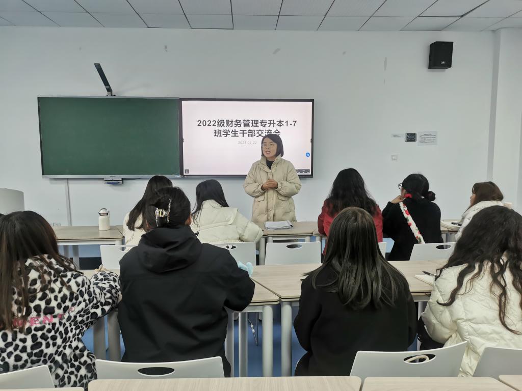 新学期伊始,为了更好地服务班级,加强班委的自我教育、自我管理、自我服务、自我监督意识,发挥班委的带头作用,增强班级凝聚力,2023年2月22日中午,淬炼·国际商学院2022级财务管理专升本1-7班在5201教室召开了新学期学生干部交流会,出席会议的有年级长、各班班长、团支书、学习委员等学生干部,会议由辅导员张竞艺老师主持。