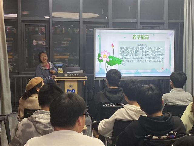 林媛同学在班会上指出问题,一是班级课堂回答问题的积极性不高,不爱参加活动。二是不能够清楚的认识全班同学,彼此间有些陌生。对于这些问题林媛同学阐述大学是个小型社会,参加活动不仅能广泛交友,开阔视野,更能够在社会中成长,为步入社会打下基础。班委们鼓励大家积极融入课堂,积极参加活动,敢于突破自我,广泛交友,增长见识。为了让同学们更加熟悉了解彼此,班级举行了一个小小的游戏互动,叫名字接龙。