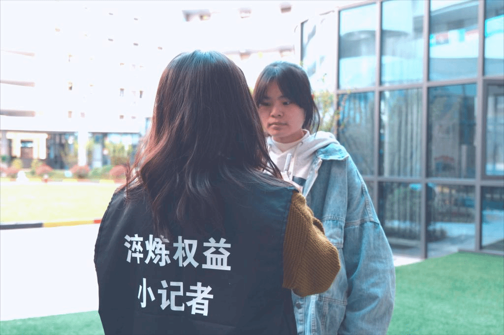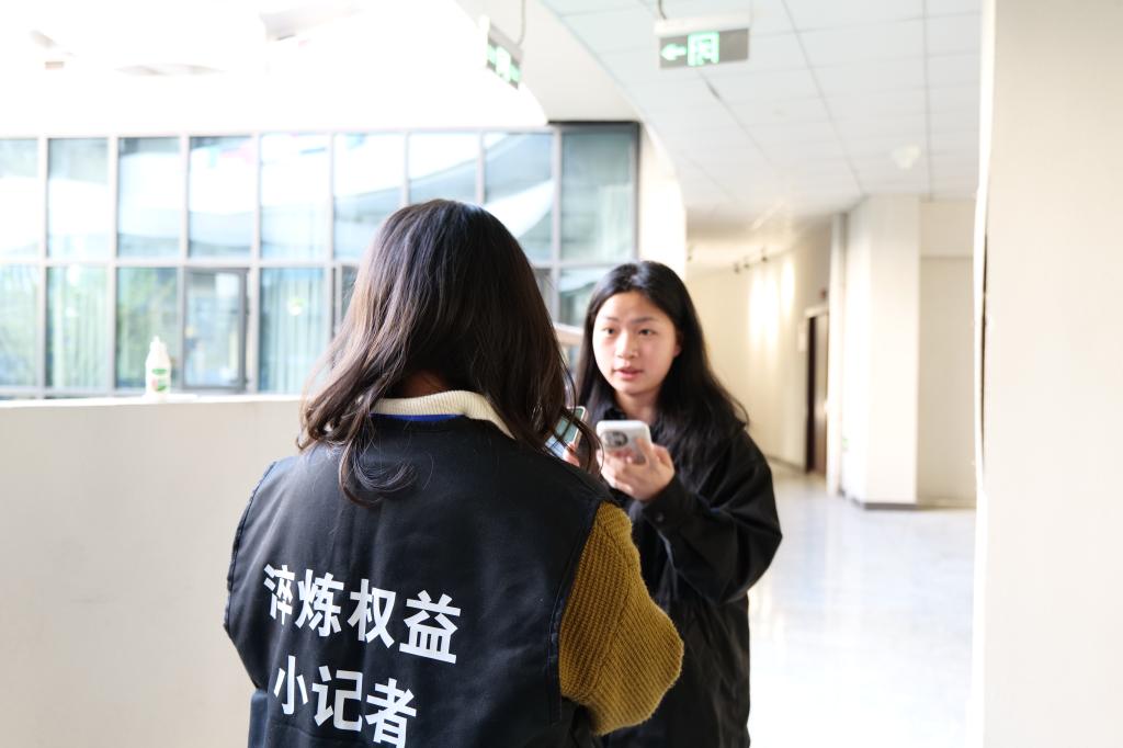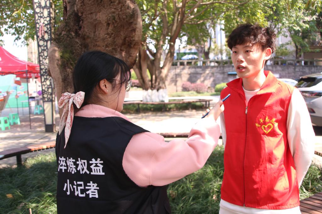权益小记者们披上马甲在黄桷树广场对同学们进行随机采访