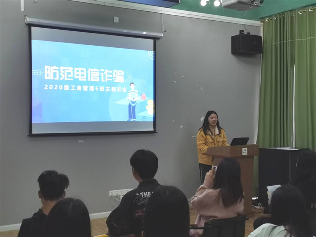 随着社会的发展,信息技术的进步,各种诈骗现象成为社会日益突出的问题,尤其是一些诈骗分子将目标转向学生,利用在校学生容易受到他人别有用心的欺骗。因此,在面对诈骗的情况时,难以有效清晰地作出判断。为此,2023年3月15日,2020级工商管理6班在花果书院功能室召开“防骗反诈”的主题班会,让同学们熟悉生活中常见的诈骗形式,增强学生们在生活中遇到诈骗现象灵活应对的意识,提高学生自我防范、自我保护、自我应对能力。