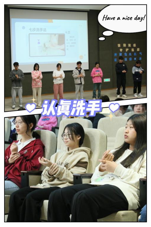 同学们积极参与“洗手七步,流感止步”环节活动,认真学习内、外、夹、弓、大、立、腕等洗手方式并主动上台展示学习成果。同学们从中知晓正确预防流感的方法,明悟预防流感需要从身边小事做起,留心细节,才能养成良好生活习惯。