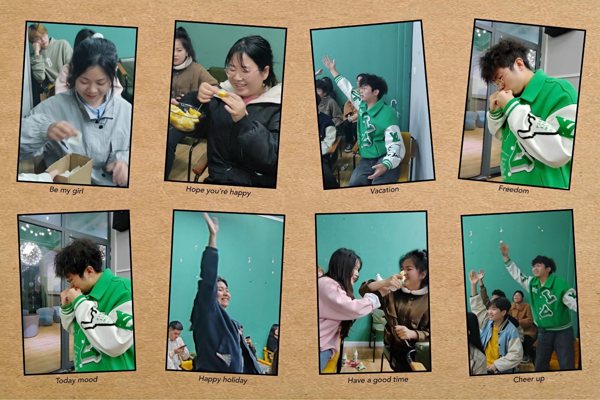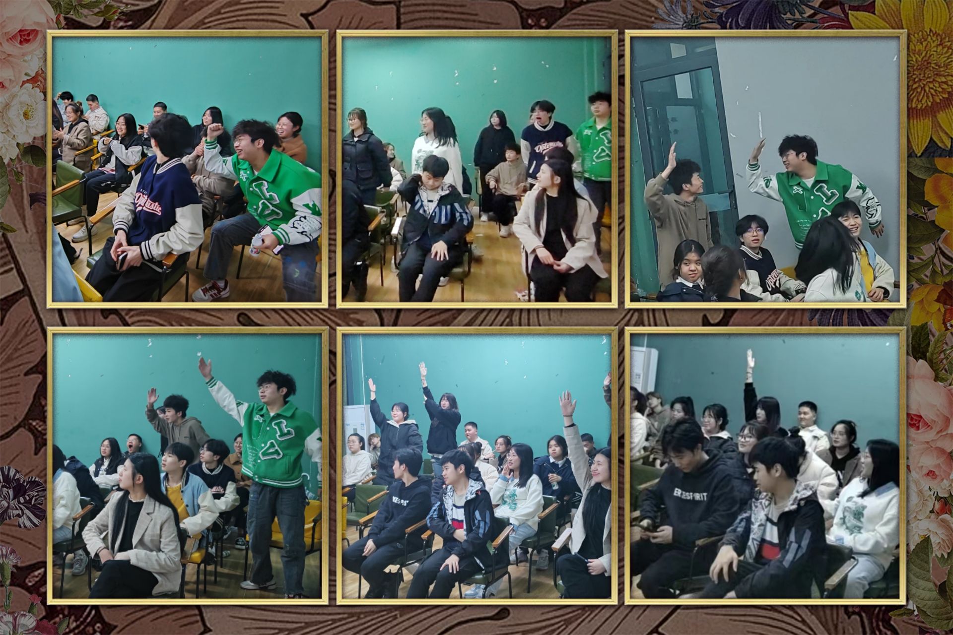 欢声笑语满堂室,最是人间显真情。在经过了三位班干部的总结发言之后,终于到了全体成员阐述学期心得的环节。每个同学都对自己上学期进行了收获总结和对自己本学期做出了规划安排。台上同学畅谈心得,座下同学跃跃欲试。一时间整个班会气氛活跃。在此之后,大家终于迎来了万众瞩目的游戏环节。“猜春天”和“大风吹”两个游戏不仅考验了同学们的成语知识储备,还测试了大家的临场反应能力。对于游戏获胜者我更是采取了抽奖模式,让整个游戏环节更加高能刺激。在零食礼物和神秘“大礼”的诱惑下,同学们纷纷抓紧机会举手抢答,一时间整个厅内气氛达到高潮,同学们都是笑容满面,欢声笑语历久不散。