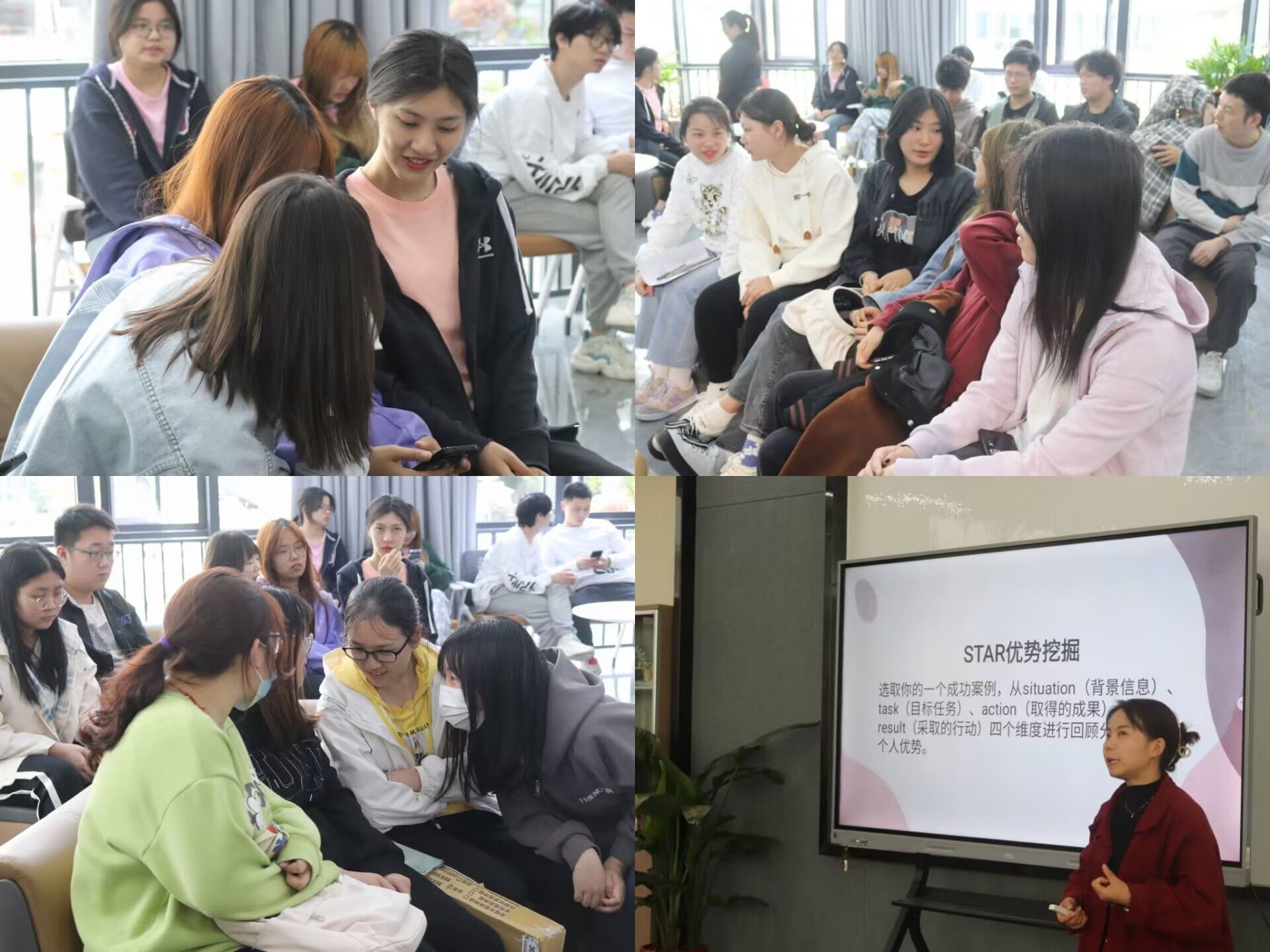 信息等于机遇。求职信息是选择职位工作决策的重要依据,也是找工作职位方向的基本前提。王艺老师让同学们小组讨论“如何获取就业信息?”作为引入告诉同学们,要通过多方面的渠道获取信息,解读招聘信息,把握就业机会。信息量越多,选择面越宽;信息越及时,越有主动权;信息越全面明确,求职盲目性越小,这样更容易成功。同时,王艺老师提醒同学们:“必须提高对信息的筛选和甄别能力。”通过报刊、网络、人才市场收集的一些不知名用人单位的信息一定要进行核实,准确可靠的为己所用。同学们通过王艺老师的讲解,了解到许多获取招聘信息的网站,为之后找工作奠定的一定的基础。同时,通过信息的收集与了解为创业道路的选择指引了方向。