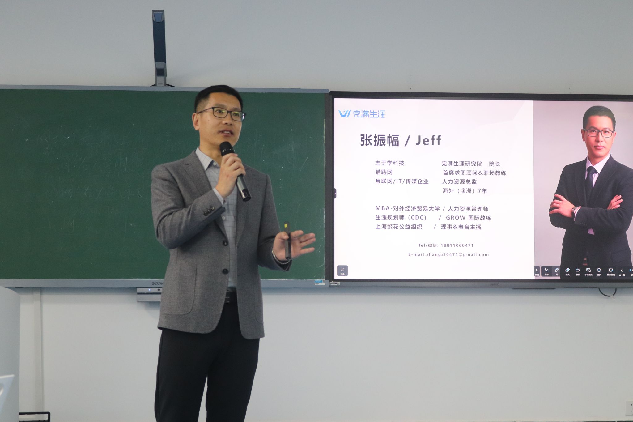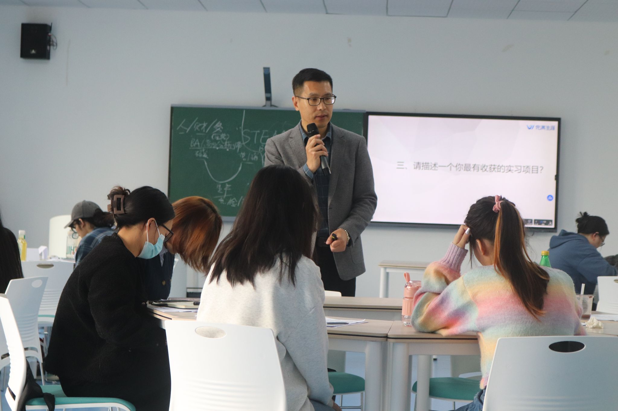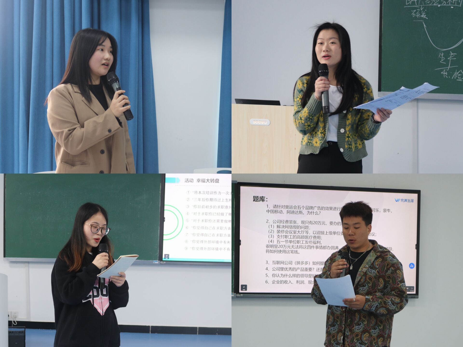 为提升商院学子的求职技能和应聘能力,提高自我抗压能力,增强求职自信心。由就业创业中心主办,淬炼·国际商学院就业助理团承办的“职场新秀训练营”培训活动于2023年4月7日至8日在第五教学楼5201成功开展。本次活动有幸邀请到完满生涯研究院院长、人力资源管理师、生涯规划师张振幅老师作为主讲老师为2022级学子进行指导讲解。同学们在情景模拟、无领导小组讨论等互动中,与张振幅老师进行高效互动。