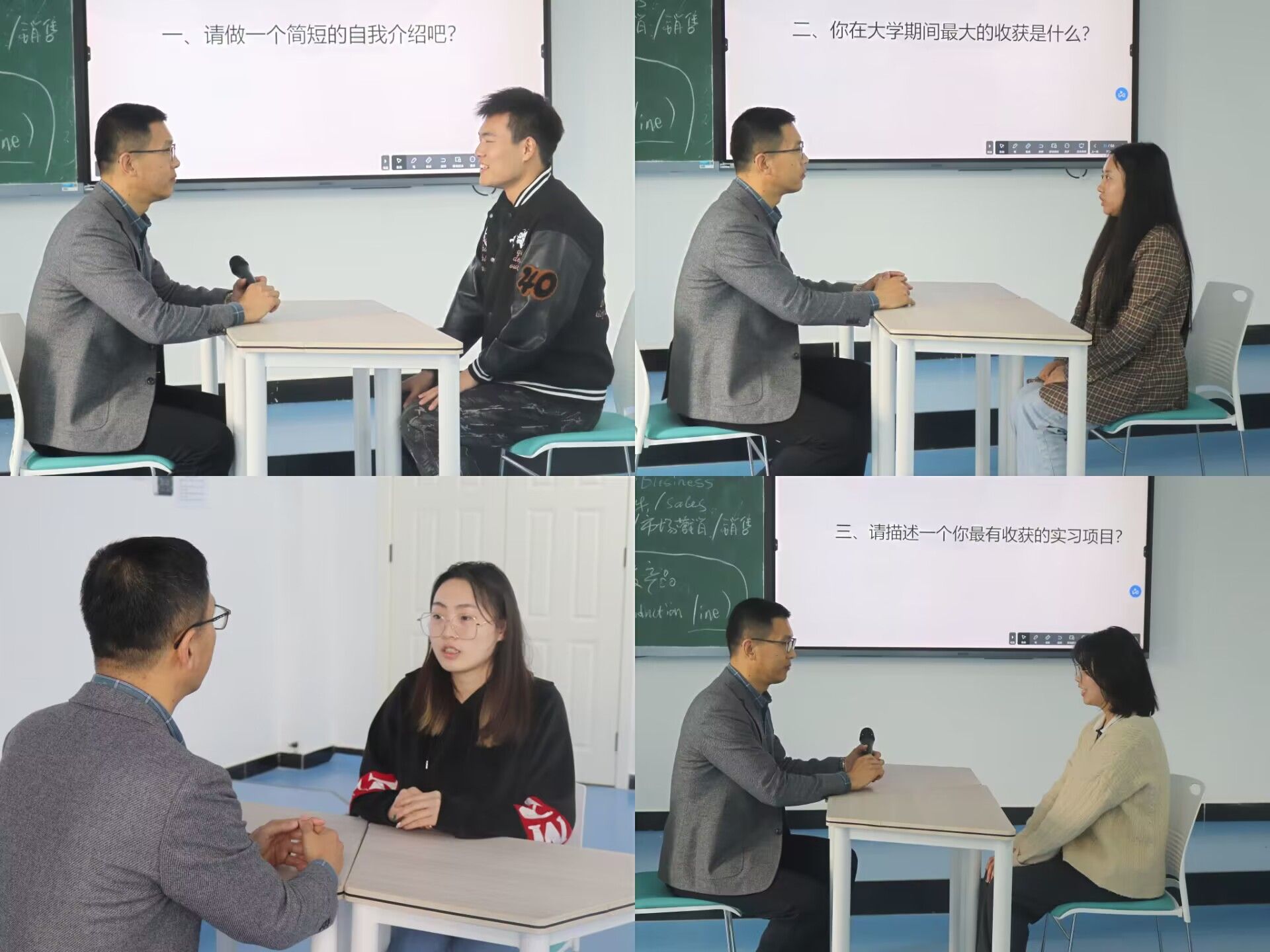 如何全面展现自我?如何面对压力面试?如何应对面试官提问?是同学们在求职过程中普遍遇到的问题。针对同学们的问题,张振幅老师主要从企业文化、企业产品、企业的业务范围、企业规模等相关内容进行讲解,并指出同学们在自我介绍中要包含行业、企业、职业三方面的内容,要阐明自己的教育背景、实习经历、个人优势与技能。然后,张振幅老师组织同学们分组进行模拟面试、无领导小组讨论面试,邀请同学代表分享展示同学们的个人优势以及自己的理想岗位。最后,张振幅老师简要介绍了求职面试礼仪的讲解,并且鼓励同学们要勤加练习,切实提高求职技能、积极向上、奋勇拼搏。
