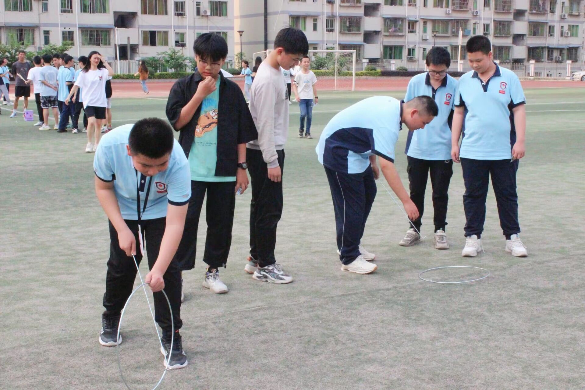 活动的最后,同学们在操场上进行体育竞技活动,感受先贤们的运动乐趣,投壶活动,同学们积极参加挑战,投壶的同学一次,两次,三次,坚持不懈,终于投进了,一个个欢呼雀跃。滚铁环的同学,先是立不起铁环,到可以滚一小段,到可以滚到终点。在这些活动中我看见了同学们的竞体精神的影子,坚持不懈,永不言败,这是先贤们在竞体展现的,是我们要发扬传承的。