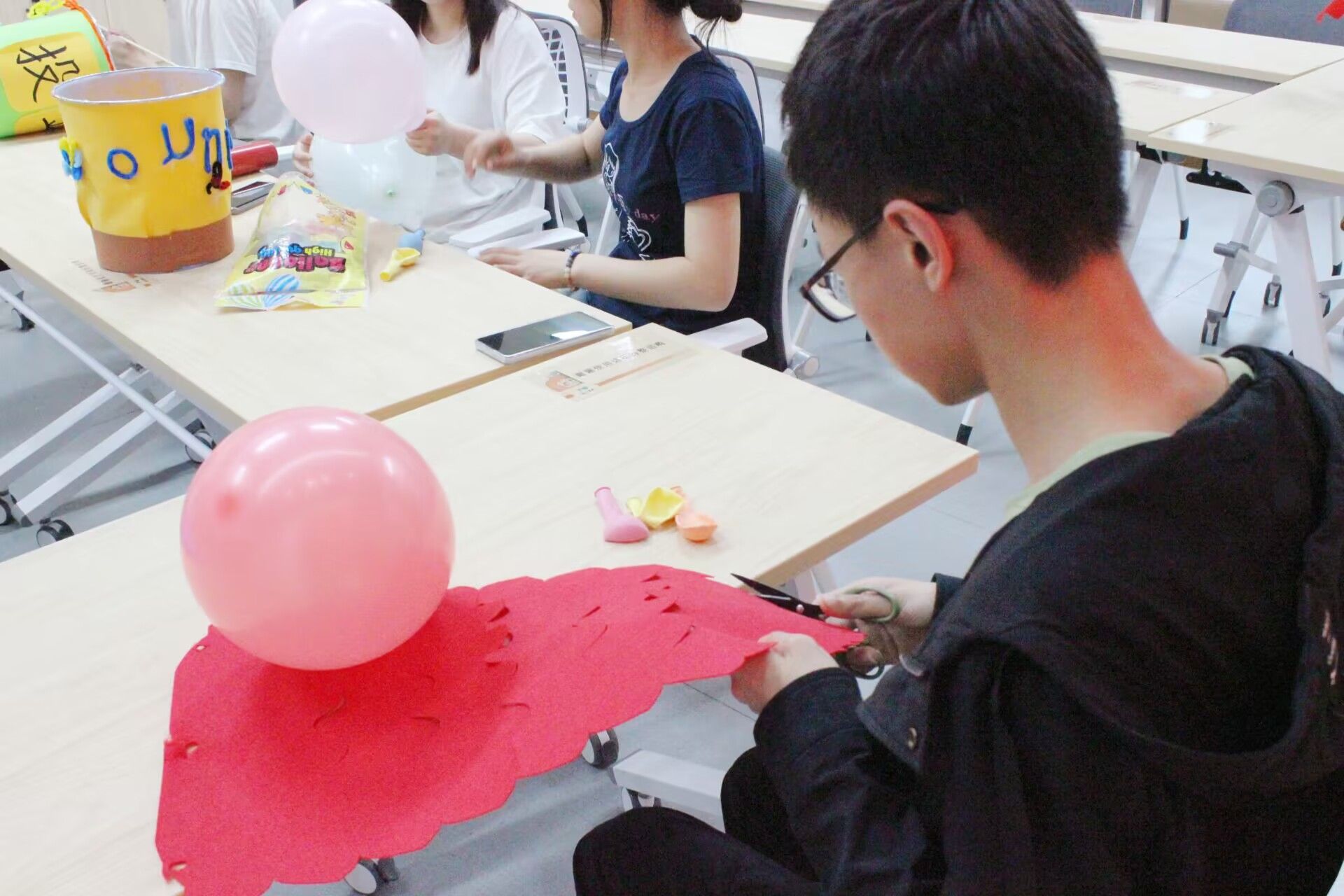 为进一步感受古代体育文化,移通学子带领同学们进行古代器具的制作环节,投壶制作,蹴鞠制作,醒狮拼接,同学们动手合作,积极参与,每个人都为他们的作品添上一份色彩。一个个精美的壶和筹展现在我们眼前。在活动中他们分工合作,积极构思,努力创新。体现了同学们该有的青春活力与探索力。