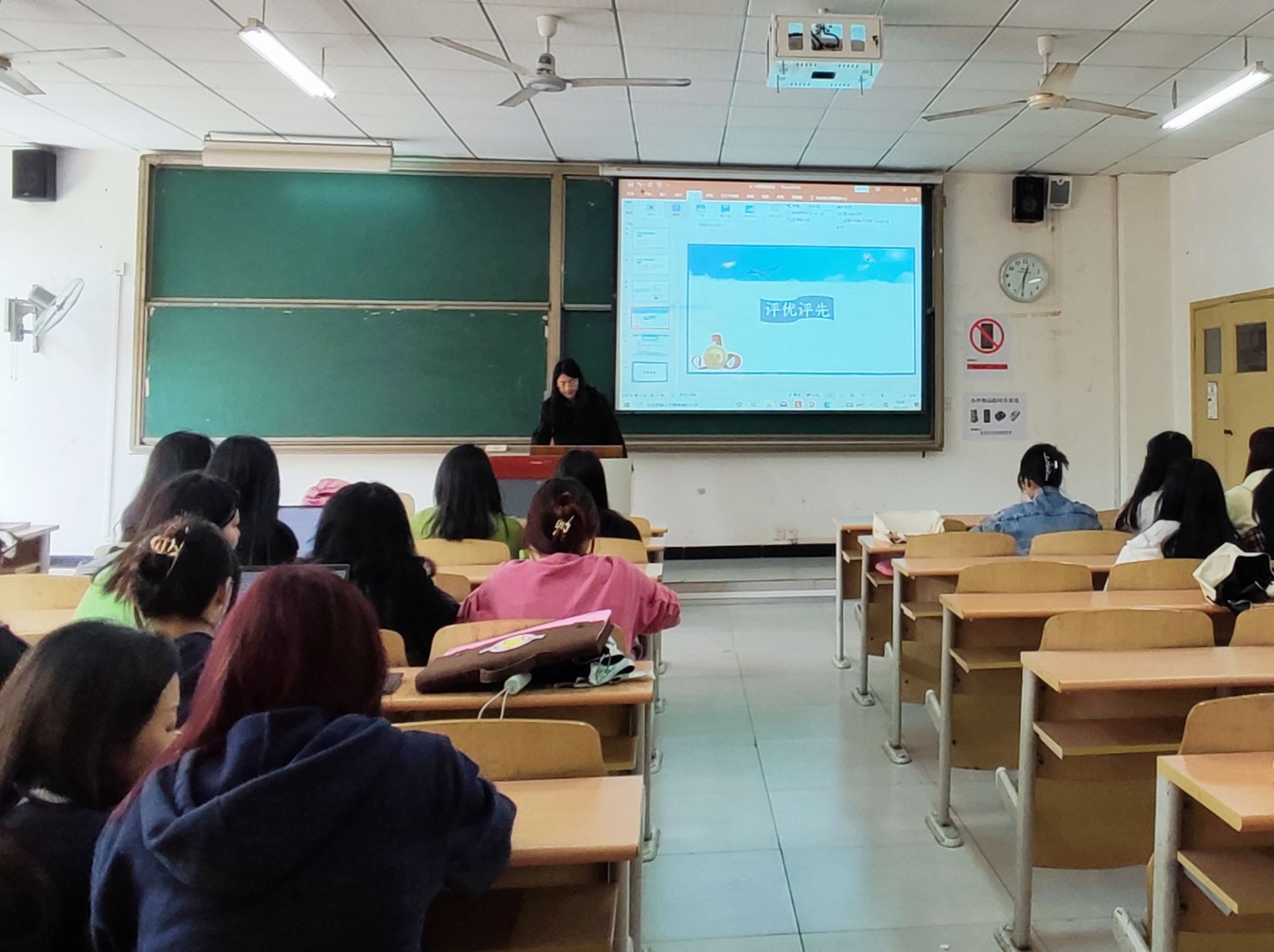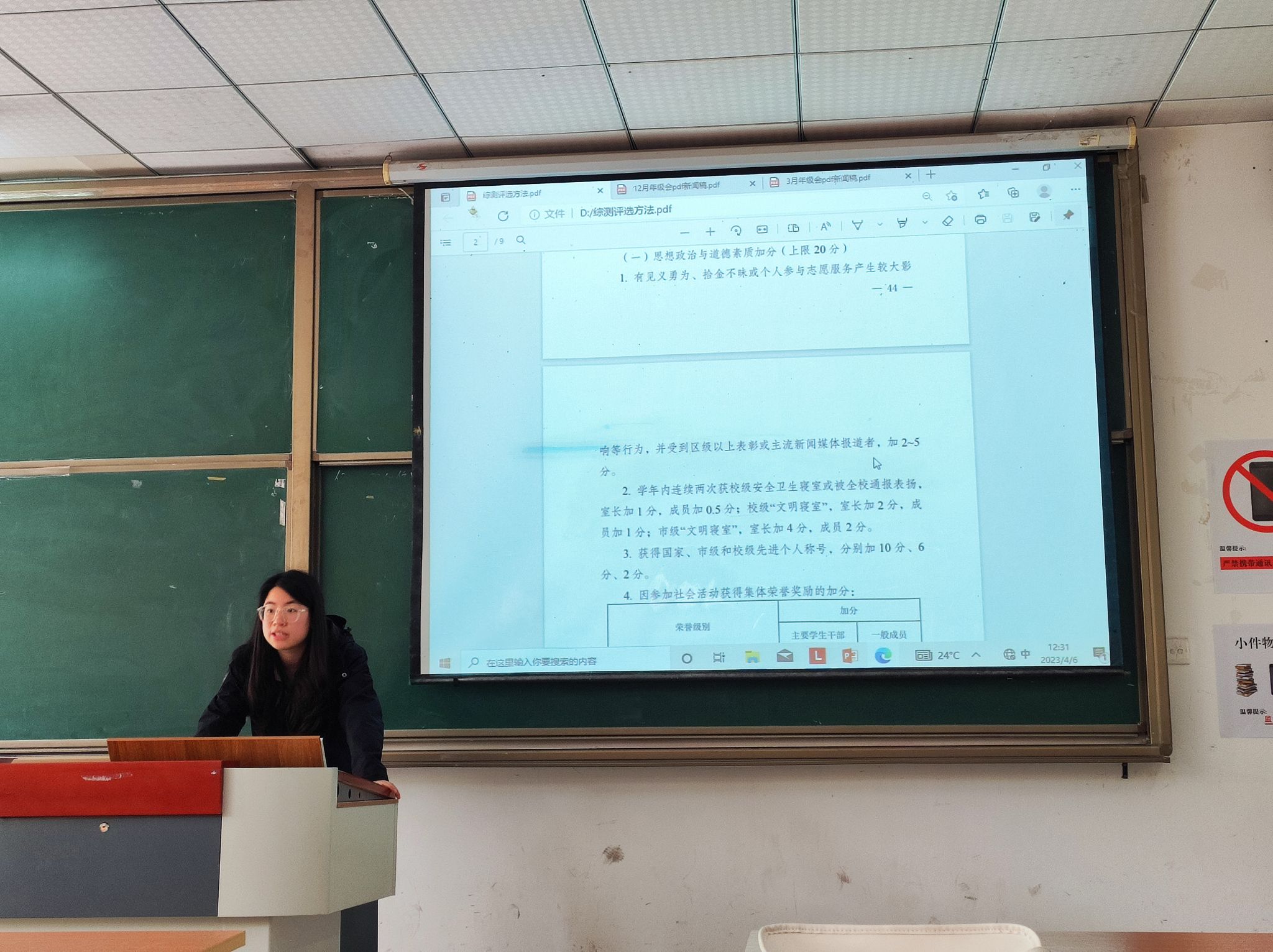 接着,为进一步推进素质教育,培养学生全方面发展人才,辅导员陈老师针对学校和学院的评优评先类型进行简单的介绍,使同学们清楚了解具体评选细则,为大家详细解读学校评优评先《综测评选方法》,让大家对此次评选有了更加深刻的认识,陈老师指出:想获得以上奖项和荣誉,仅成绩达到要求还是远远不够的,鼓励大家在课余时间积极参加各类竞赛以及各项活动,在提高课程成绩的同时提升自己的素质能力。