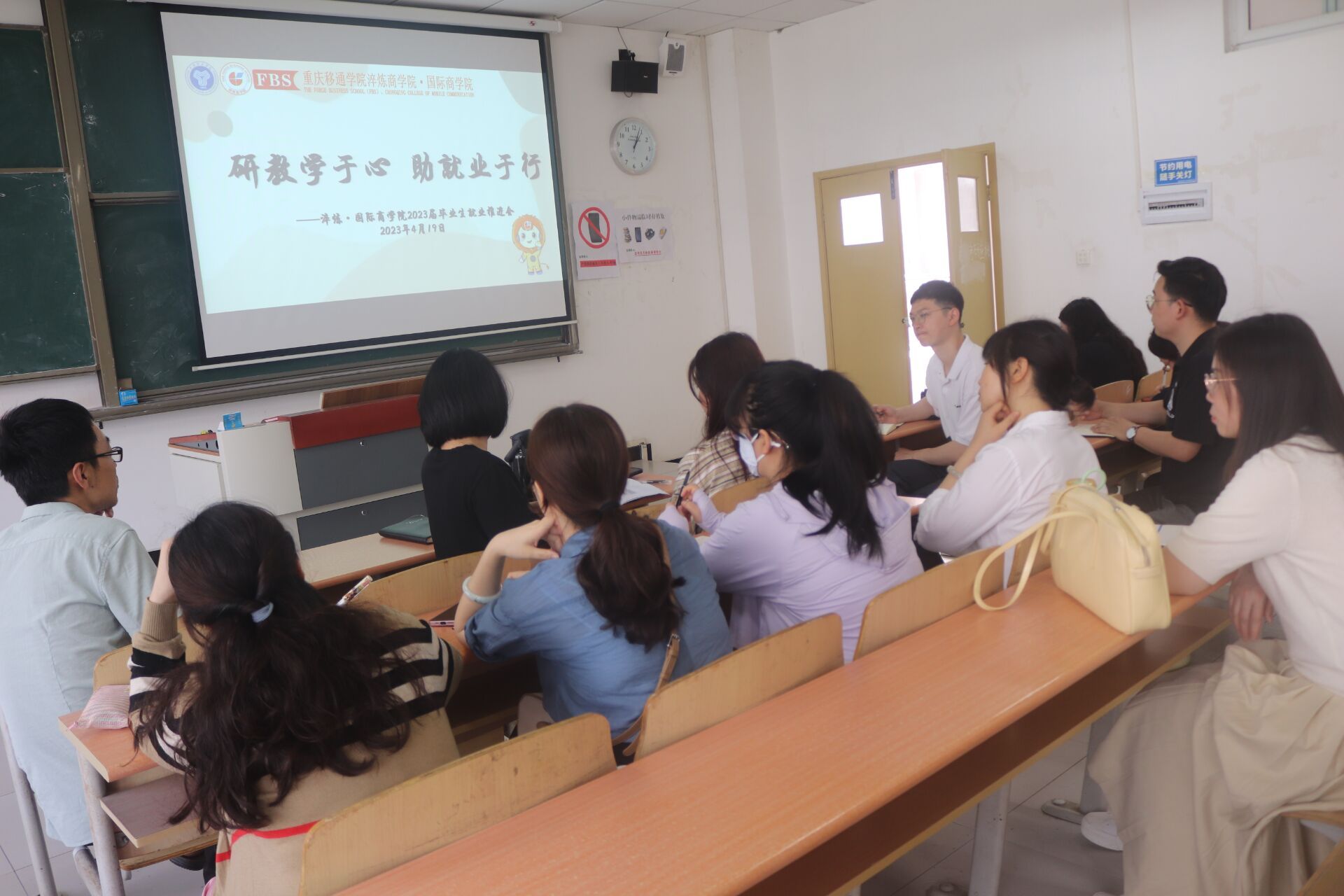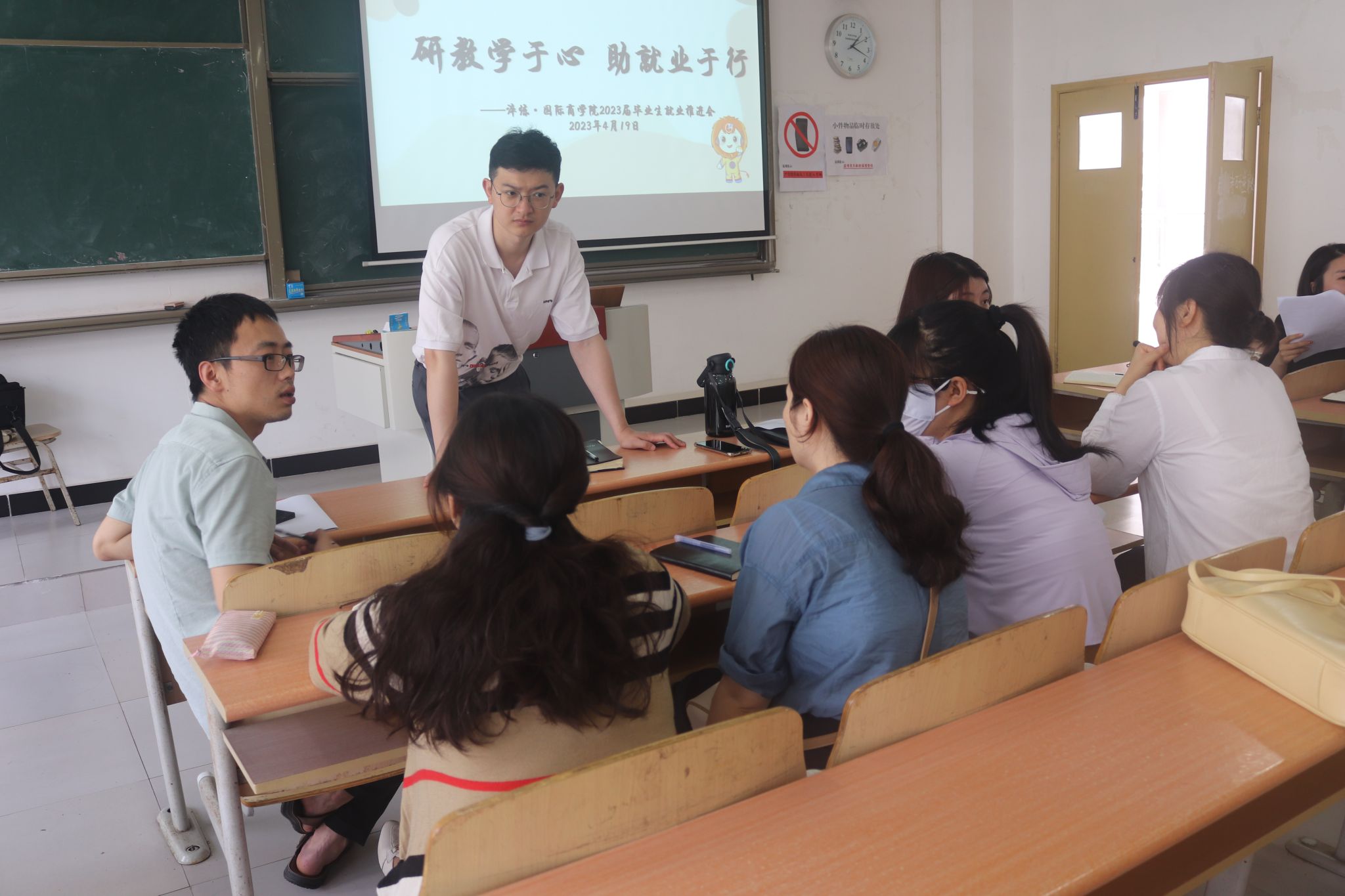 为贯彻国家毕业生就业方针和政策,执行学校毕业生就业工作的要求,切实做好我院2023届毕业生就业工作,引导毕业生把握住就业机会,实现高质量就业。淬炼·国际商学院于2023年4月19日13:00在第五教学楼5405和第八教学楼市场营销教研室分别开展“研教学于心 助就业于行”为主题的就业推进会。本次会议特邀市场营销教研室主任寇小玲老师、工商管理教研室主任杨宝石老师、就业创业工作办公室主任杨伦芳老师、专任教师以及毕业班辅导员参加。