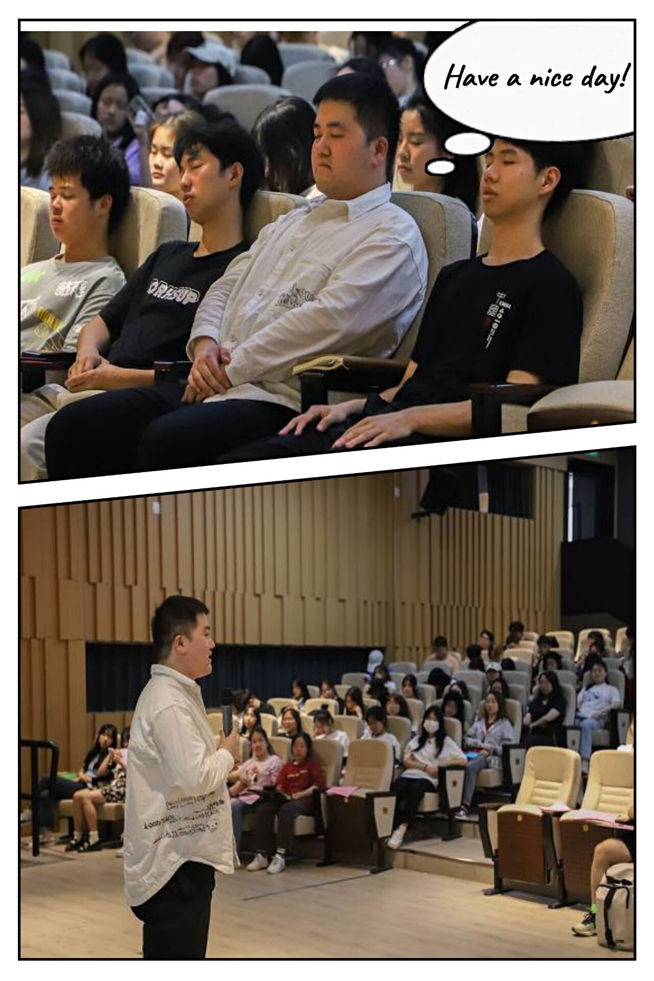 善养生者,使之能逸而能劳。青年强则国家强,青年是国家的未来和民族的希望,青年的体质健康关乎中华民族伟大复兴的百年大计。为引导同学们意识到健康的重要性,注重锻炼,提升体质,养成更加健康、积极的生活习惯,淬炼·国际商学院2022级工商管理类15-21班、国际班全体同学于4月20日14:30在六度空间 创梦空间开展了“芳华力绽放•躯动意健康”主题年级会。