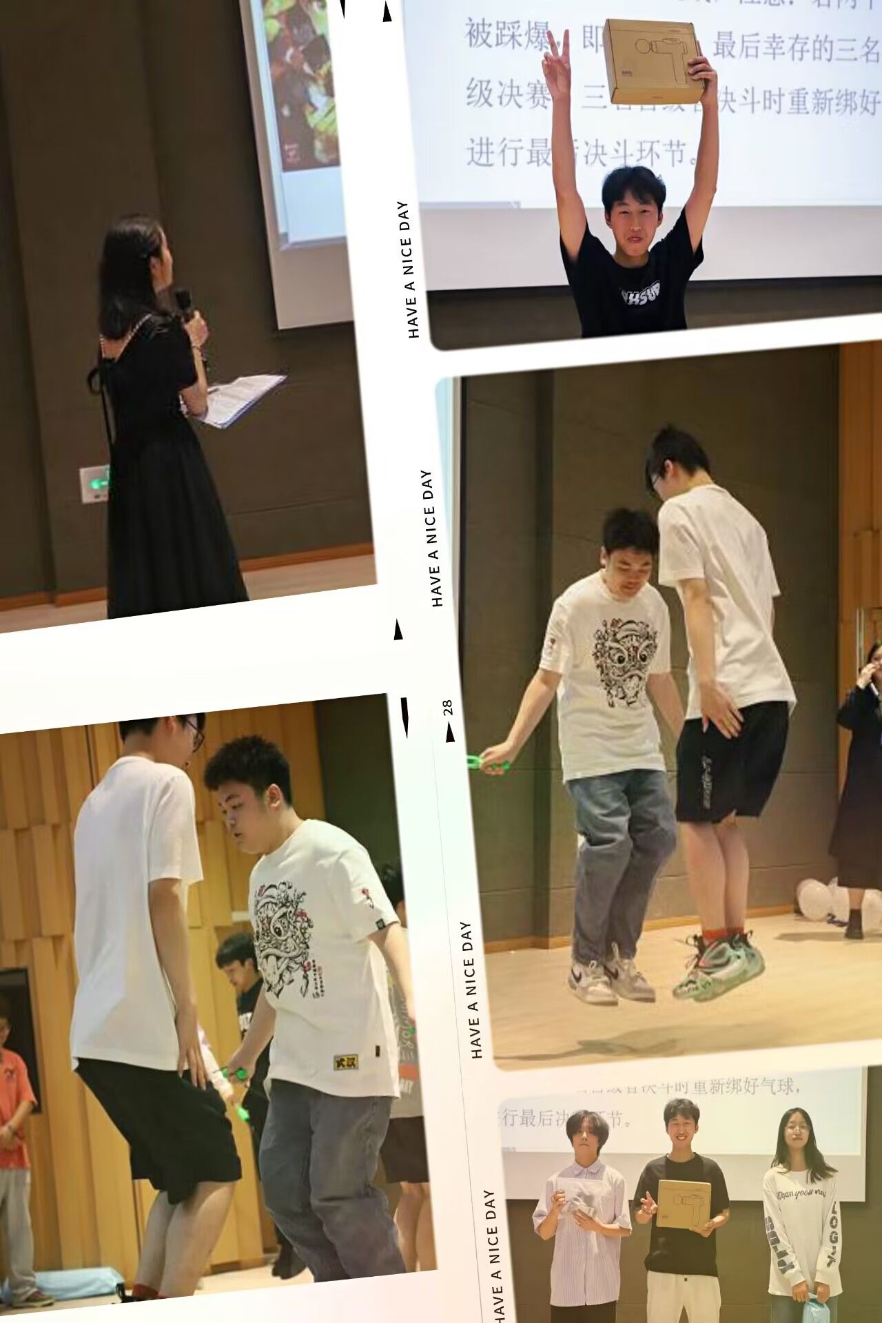 健康的体魄,永恒的追求。活动伊始,只见一瘦一壮两男子行至中央,以如何锻炼有强壮身体的有趣小短剧拉开本次活动序幕。主持人向大家讲解了体育锻炼的必要性以及如何科学的锻炼,进一步引导同学们参与到体质锻炼中来。讲解理论知识后,也到放松筋骨的时候了。“绳采飞扬”游戏的介入,让现场一片嬉笑声,同学们都跃跃欲试挑战两人共同体质跳绳活动。“有风有雨是常态,风雨无阻是心态,风雨兼程是状态”压力随处而在。“气球砰砰砰”的解压小游戏将气氛推向高潮。十名选手谁也不让谁,在气球爆炸中感受到欢乐、紧张、刺激的游戏氛围,在锻炼反应力和平衡力的同时得到缓解压力。健身和解压放眼世界,体育运动重要乃是世界共识。“殊不知有健全身体,才有健全之精神。”
