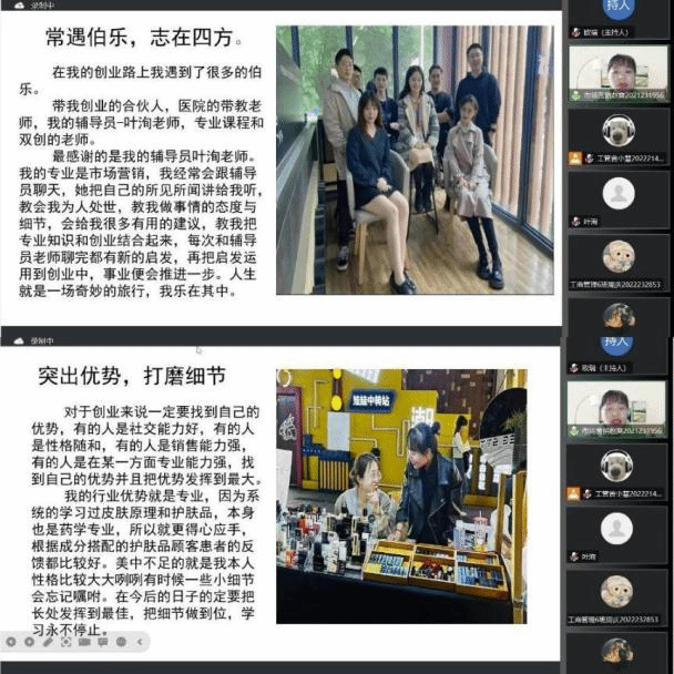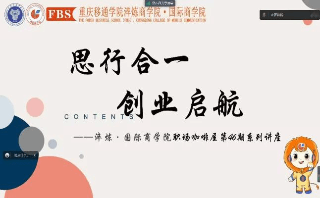 为帮助商院学子了解自我发展方向、明确人生目标,同时加深对职业规划的理解和未来人生的追求。2023年4月24日,由重庆移通学院就业创业服务中心主办,淬炼·国际商学院就业助理团承办“思行合一,创业启航”——职场咖啡屋第46期通过线上腾讯会议成功开展。本次活动有幸邀请到中共党员、重庆工商大学工商管理硕士、淬炼·国际商学院辅导员、重庆移通学院首批“全生异科导师”叶洵老师以及淬炼·国际商学院2021级市场营销(专升本)专业学生赵爽学姐作为主讲人与同学们探讨交流。