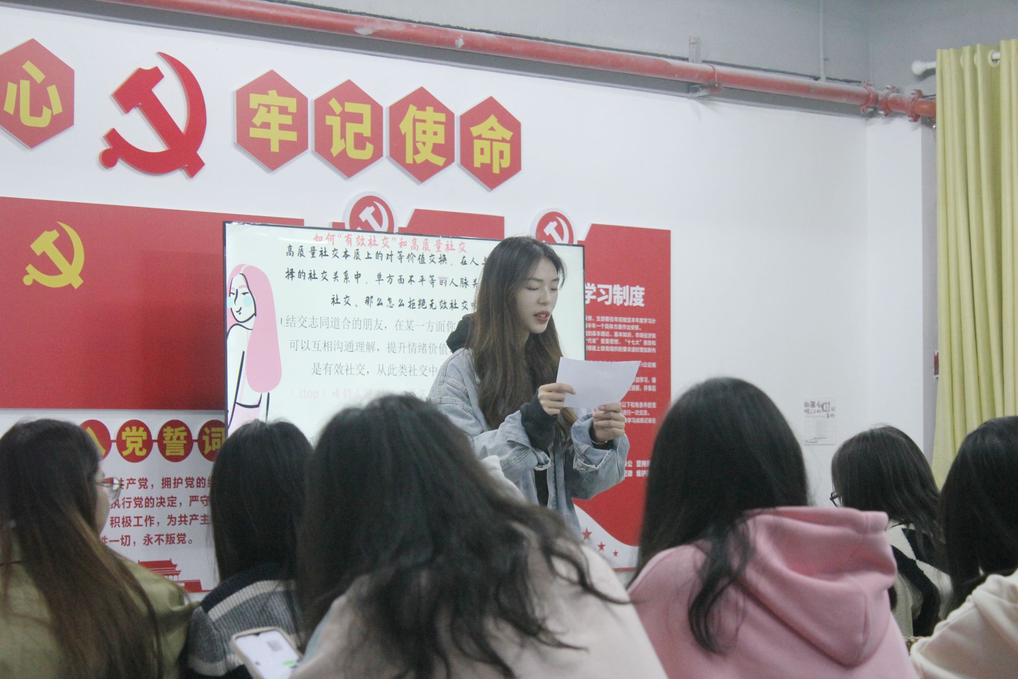 工欲善其事必先利其器。活动中期,针对如何‘‘有效社交’’和‘‘高质量社交’’主持人从五个角度分别是志同道合,三观相似,懂得拒绝,真诚待人和提高认知和包容度阐述了该如何拒绝无效社交以及如何高效社交的方法。只有志同道合三观相似的两人才能成为朋友,而真正的朋友也会懂得拒绝,保留自己的底线相互鼓励共同进步。只有提高认知和包容度,用真诚待人才能收获更多的朋友,当自己受到不平等待遇时也应及时止损,广交诤友,勿交损友。9班班长胡雨晴同学也发表了自己的理解和感想,祝愿大家在学习生活中都能找到与自己同频共振的知心好友!