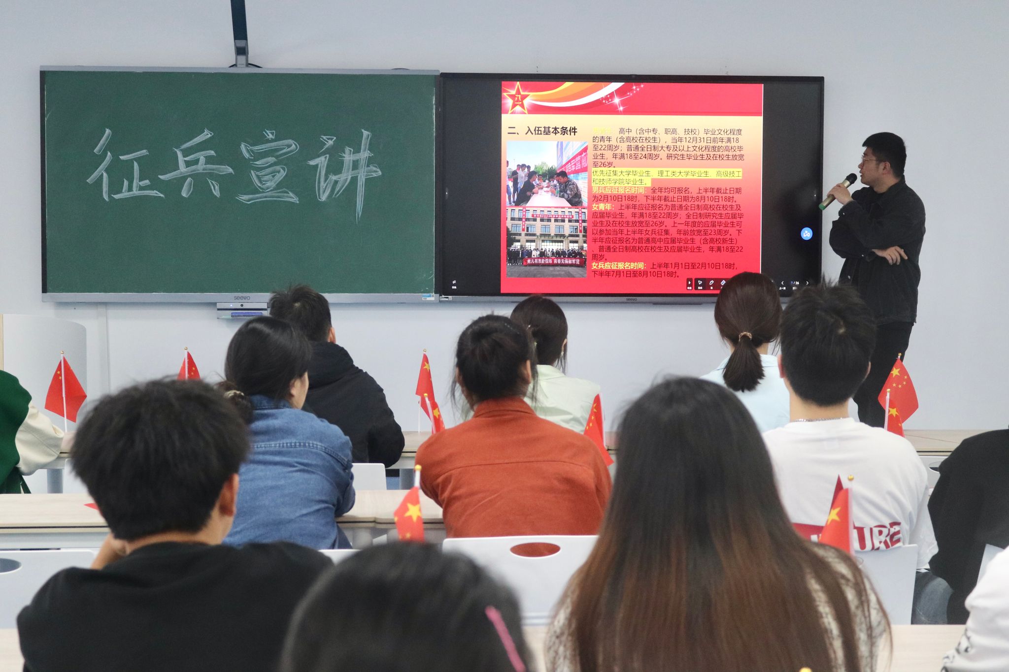 为贯彻落实兵役法,服从国家建设需求,保障国家征兵需要,让淬炼学子深刻认识国防的重要性与必要性,淬炼•国际商学院于5月10日下午14点在5201教室开展征兵宣传讲座。本次讲座有幸邀请到学生处老师张旭,为同学们进行征兵知识宣传及问题答疑,旨在帮助同学们了解征兵政策,学习相关知识,鼓励更多在校大学生积极参与征兵。