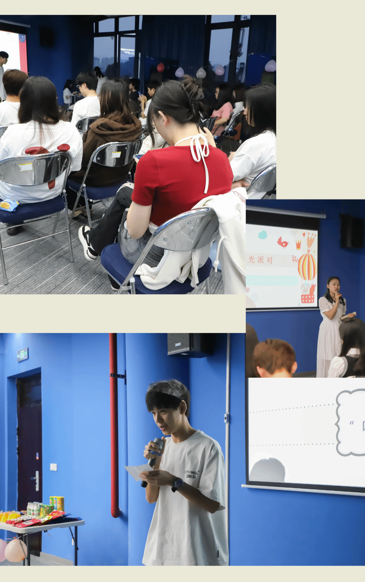 青春是萤火绚丽的流动星河,灿烂却短暂。大一的最后时光在美好回忆中徐徐前进。盛夏的夜晚,伴着徐徐夜半的清风,2022级工商管理类19班的“时光派对”主题班会在5月26日晚上7:30在天空书院揽江厅予以开展。“星光不问赶路人,时光不负有心人”在时光的流逝中,同学们一同携手,寻找初入大学的记忆犹新的初心懵懂瞬间。