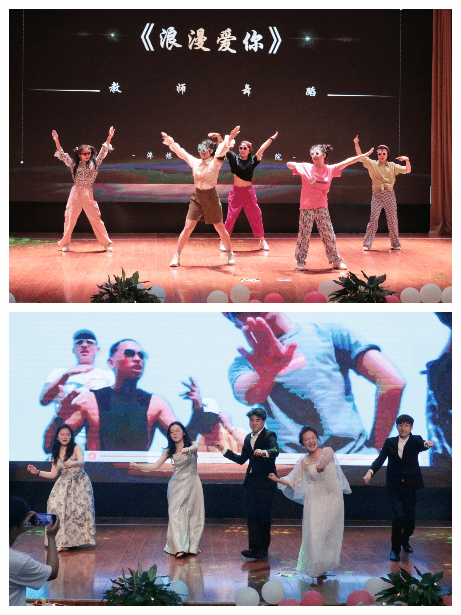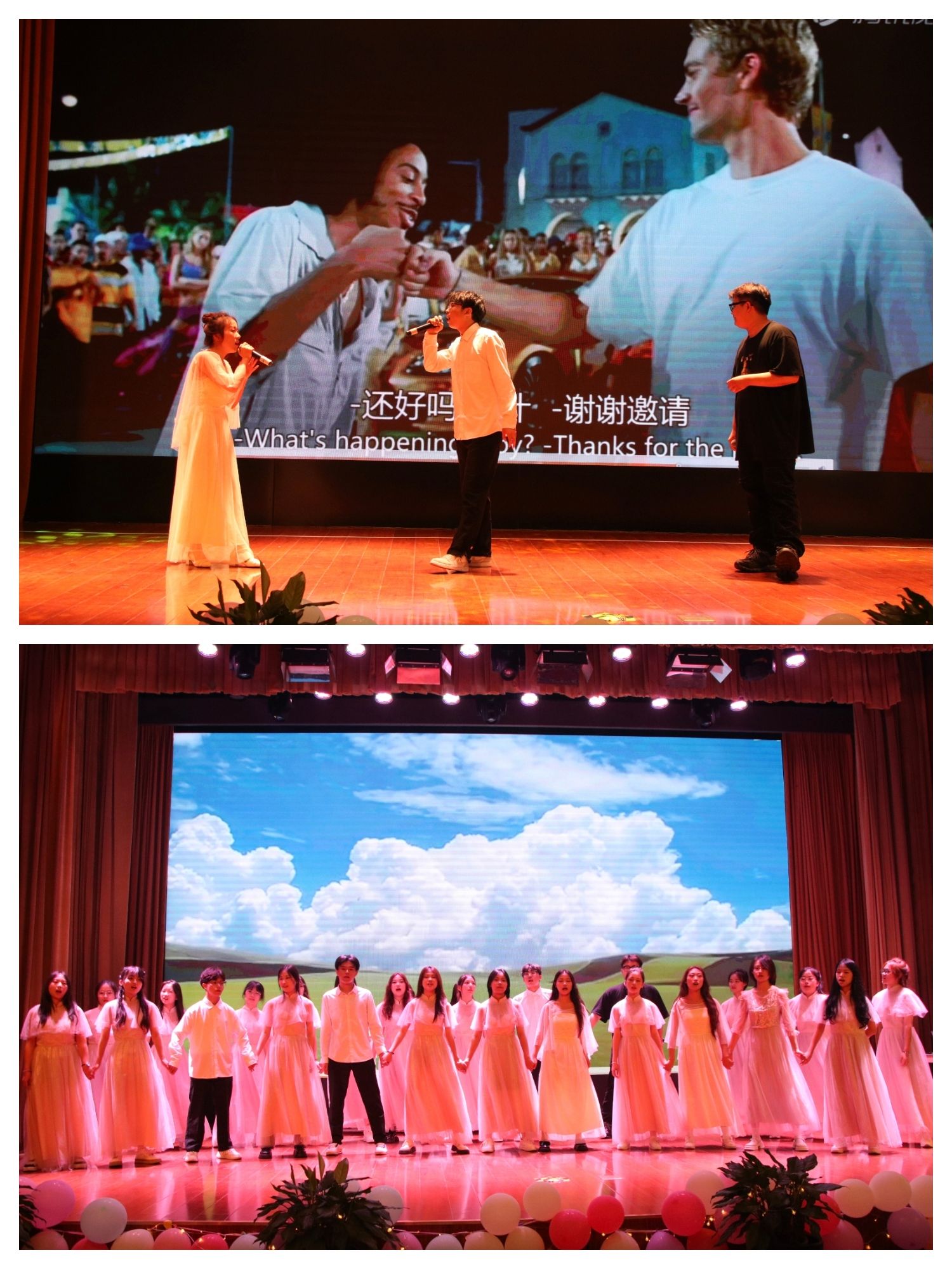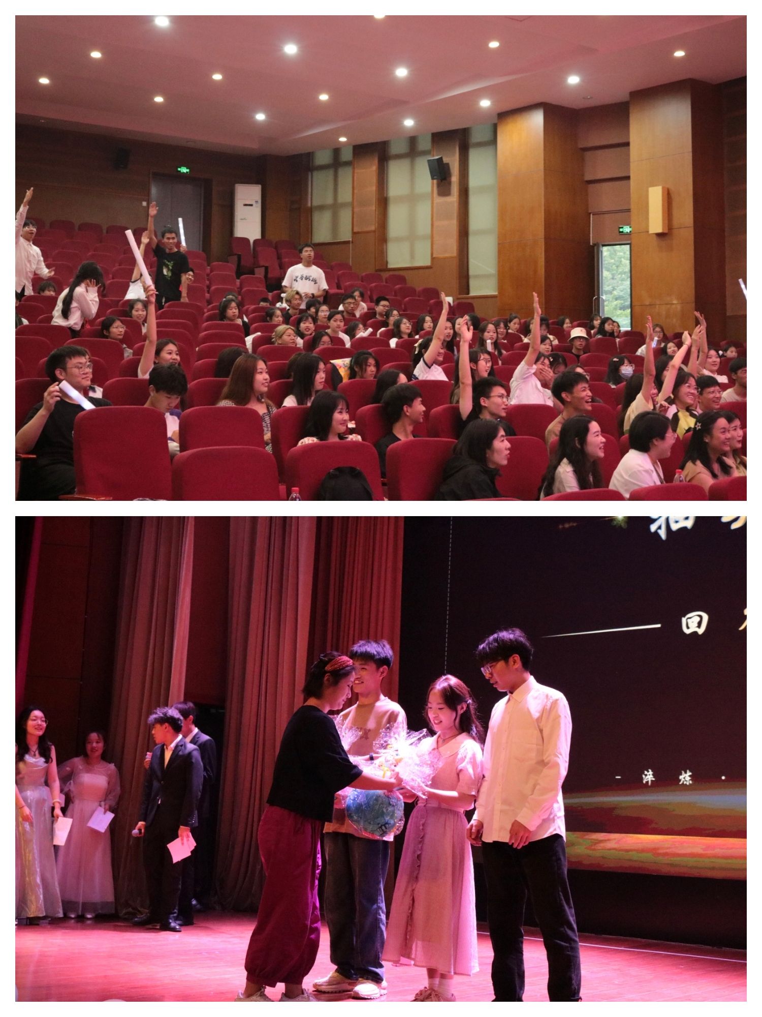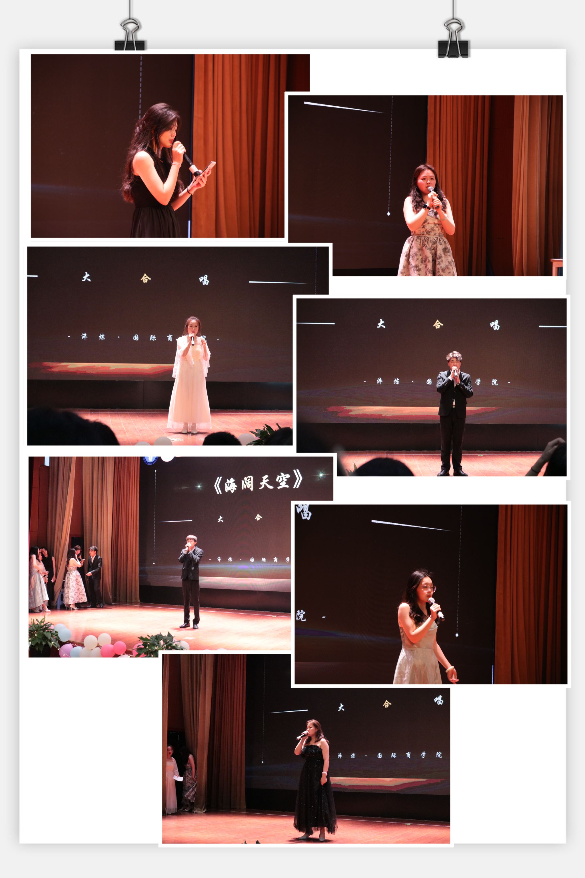 老师们摇身一变为多巴胺女孩,带来活泼可爱的舞蹈《浪漫爱你》,将平日里看不到的一面展现给大家。主席团成员们也带着精心准备的节目,在商院的舞台上留下最后的一笔浓墨重彩。最后,二届二任主席团与大家一一进行了告别,策划、新闻稿、举办活动……当初想要逃离的苦海现在成了不舍的点点滴滴,眼中饱含泪水,用拥抱感受爱意。全场齐声高歌《海阔天空》,同学们也大声附和,在无助、困难中,大家同心协力,拼搏攻坚,共同谱写新篇章。