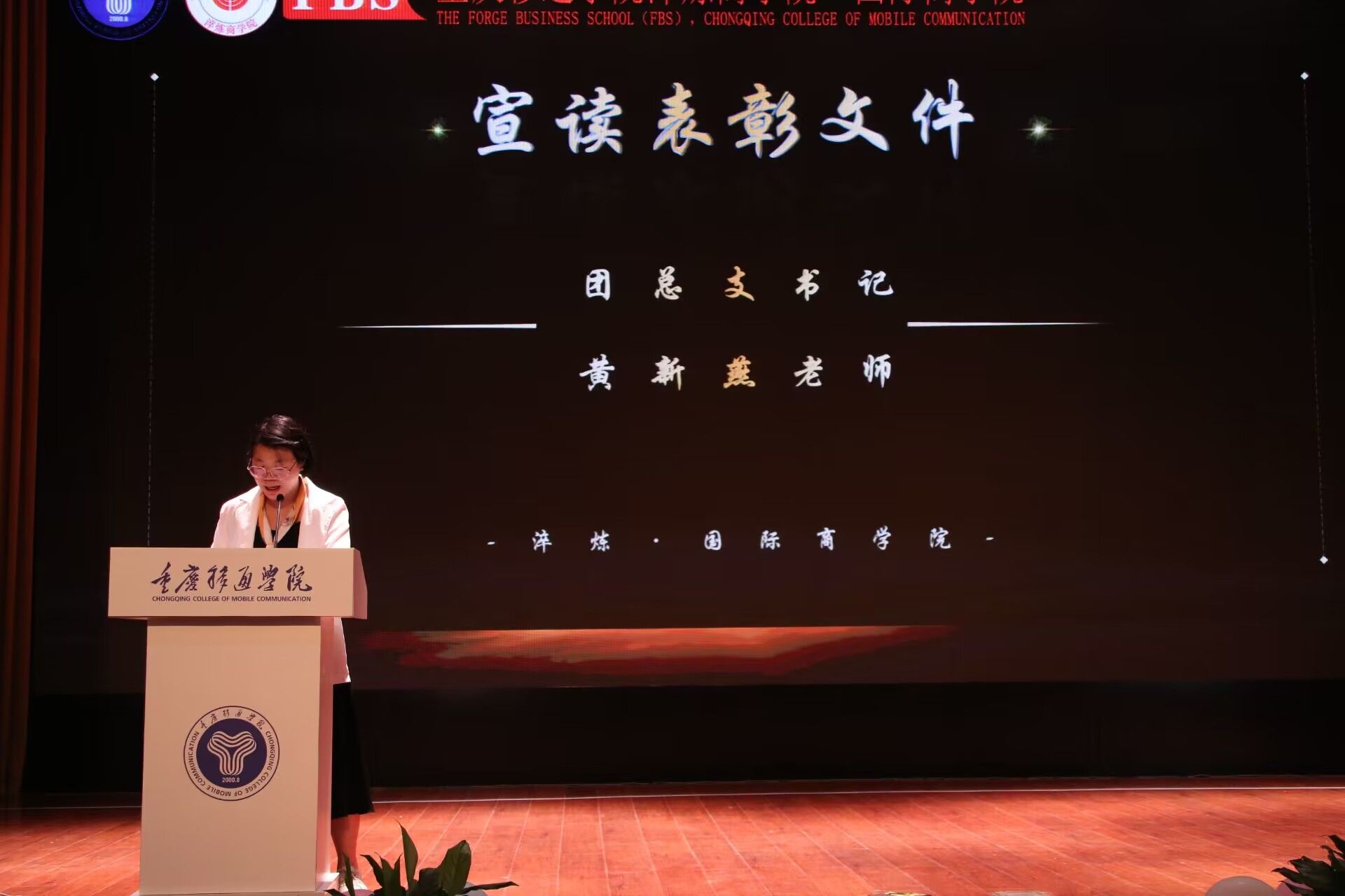 随后,团总支书记黄新燕宣读《关于表彰2022-2023学年共青团重庆移通学院淬炼·国际商学院工作各类先进部门和个人的通知》,并对商院本学年的各项工作进行总结,希望商院的学生组织,能够携手共创下一个辉煌!
