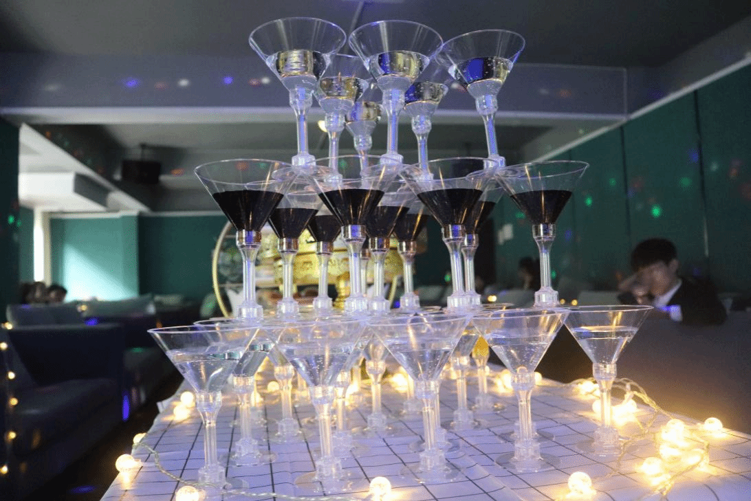酒杯轻碰,水波荡漾