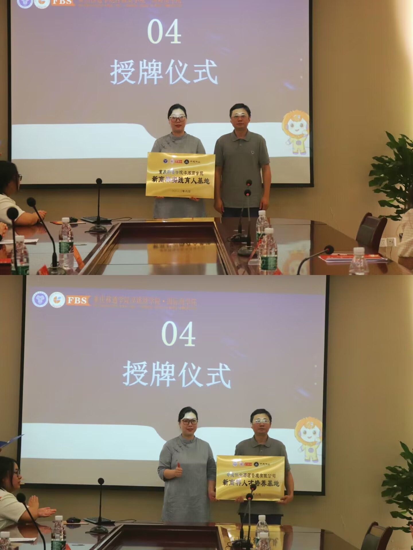 征途路漫漫,同学们以后的道路还任重而道远。中成伟业集团公司人力资源部主任张洁馨表示公司将会用百分之两百的热情与责任心让同学们在公司的培育下从一位职场“小白”蜕变成为职场精英。一家有温度的企业,是有大爱的。中成伟业酒店管理有限公司在秉承“全力以赴,追求卓越”服务理念的基础上,积极发挥公司的社会责任感为公益事业贡献自身的力量。校企双方领导的发言让同学们对订单班有了进一步的了解。随后举行授牌仪式,由张平校助和中成伟业集团公司人力资源部主任张洁馨进行校企双方授牌,此次授牌仪式的完满落幕也标志着商学院订单班的成功建立。