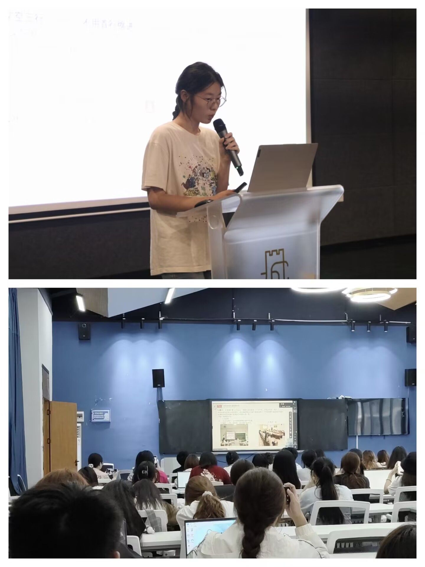 照片是展示活动效果的重要载体,是活动最生动的诠释。唐可馨同学讲到,无论是前期准备工作、中期摄影工作,还是后期修图选图工作,都是每一个新闻工作者的必修课。拍摄构图方面,要尽量避免背景杂乱或者出现闭眼、“半截人”等情况,组图搭配上特写镜头、全景、抓拍要表现故事的瞬间性,除此之外,借用图片排序,表达对事件的看法及表达走向趋势也很重要。唐可馨同学也提醒学员们在拍照过程中要克服“社恐”,大胆与现场活动人员沟通,寻找最好的拍摄角度。