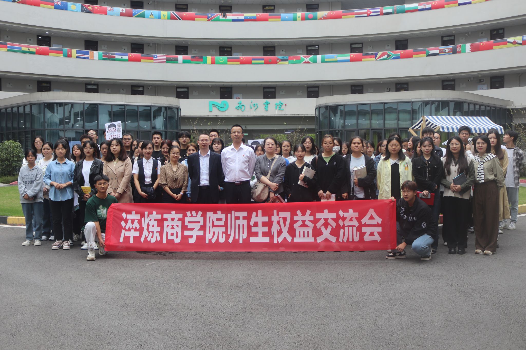 近年来,征信类电信诈骗日渐频繁,严重危害人们的财产安全。为防范征信类电信诈骗,保护商院学子的身份信息安全,淬炼商学院于2023年9月26号中午12:30在合川校区南湖书院声影活动室开展以“防范诈骗擦亮眼,诚信守信行天下”为主题的师生权益交流会。此次活动邀请到国家金融监督管理总局合川监管分局李伟副局长、大型银行监管科廖承红科长、中国银行合川支行吴和伟副行长、中国银行合川支行综合管理部主任林小平,以及淬炼商学院安全与稳定板块指导老师张竞艺、竞技体育板块指导老师陈露桦、大咖阅读板块指导老师张思静共同参与此次活动。