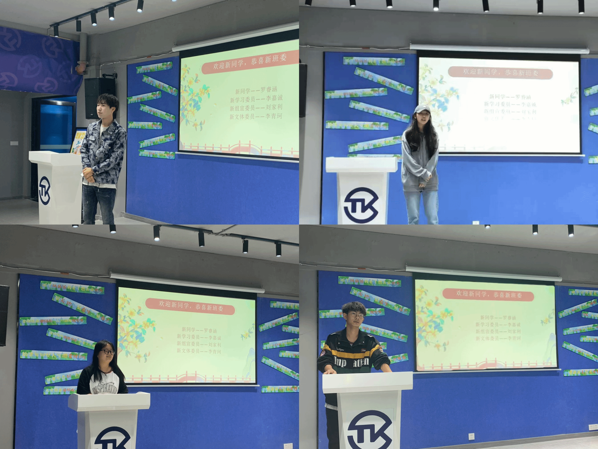 活动伊始,由新班委李嘉城同学、刘家利同学和李青珂同学依次上台,向大家传达自己的职责和工作计划,并建立良好的互动关系,调动班级氛围。随后欢迎新同学罗睿涵同学加入2022级工商管理类14班这个大家庭,希望能为新同学营造一个温暖、友好和融洽的班级氛围,让他感受到新班级的关怀和支持,顺利度过过渡期。本次班会提供了一个交流与互动的平台,让班级内的新班委与同学们以及新老同学之间建立联系和友谊,促进相互了解和互相帮助。