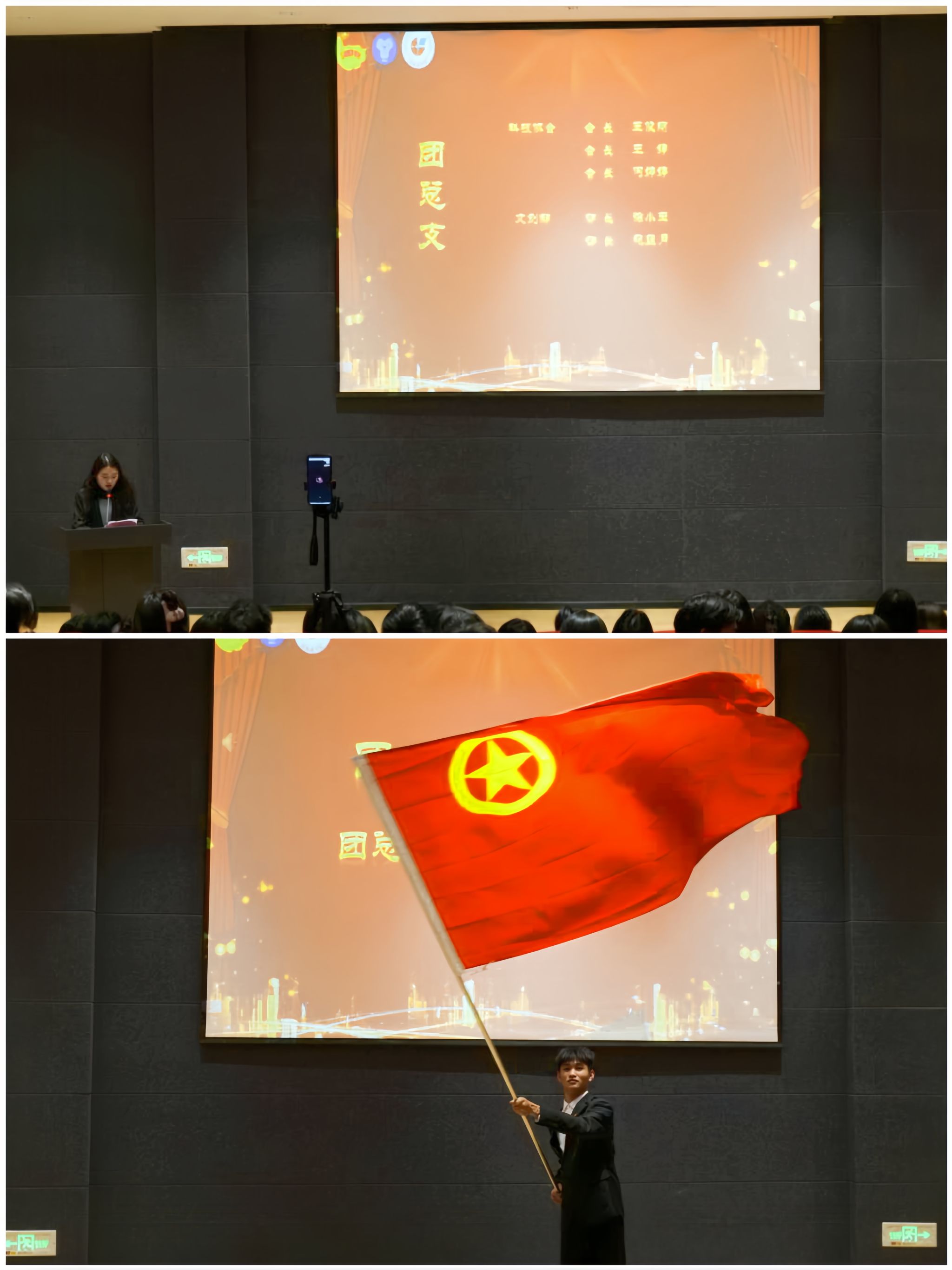 大会议程第五项,由就业创业办公室主任杨伦芳老师宣读了2023-2024学年淬炼商学院二届三任学生干部任命决定,并由二届二任团总支学生副书记陈建峰同学向二届三任学生组织代表曾芮同学授予团旗。授团旗是使命的延续,信念的传递,此次授旗仪式也寓意着新一届学生组织将坚定完满教育的道路,为淬炼商学院的完满之路增光添彩。随后,在淬炼商学院团总支学生副书记曾芮同学的带领下,全体学生干部干事集体宣誓,铿锵有力的声音表达了二届三任学生组织成员们积极奉献的工作态度和为学院添彩的工作目标。相信同学们可以肩负责任,用无悔青春书写完满,以绚烂青春书写风采。