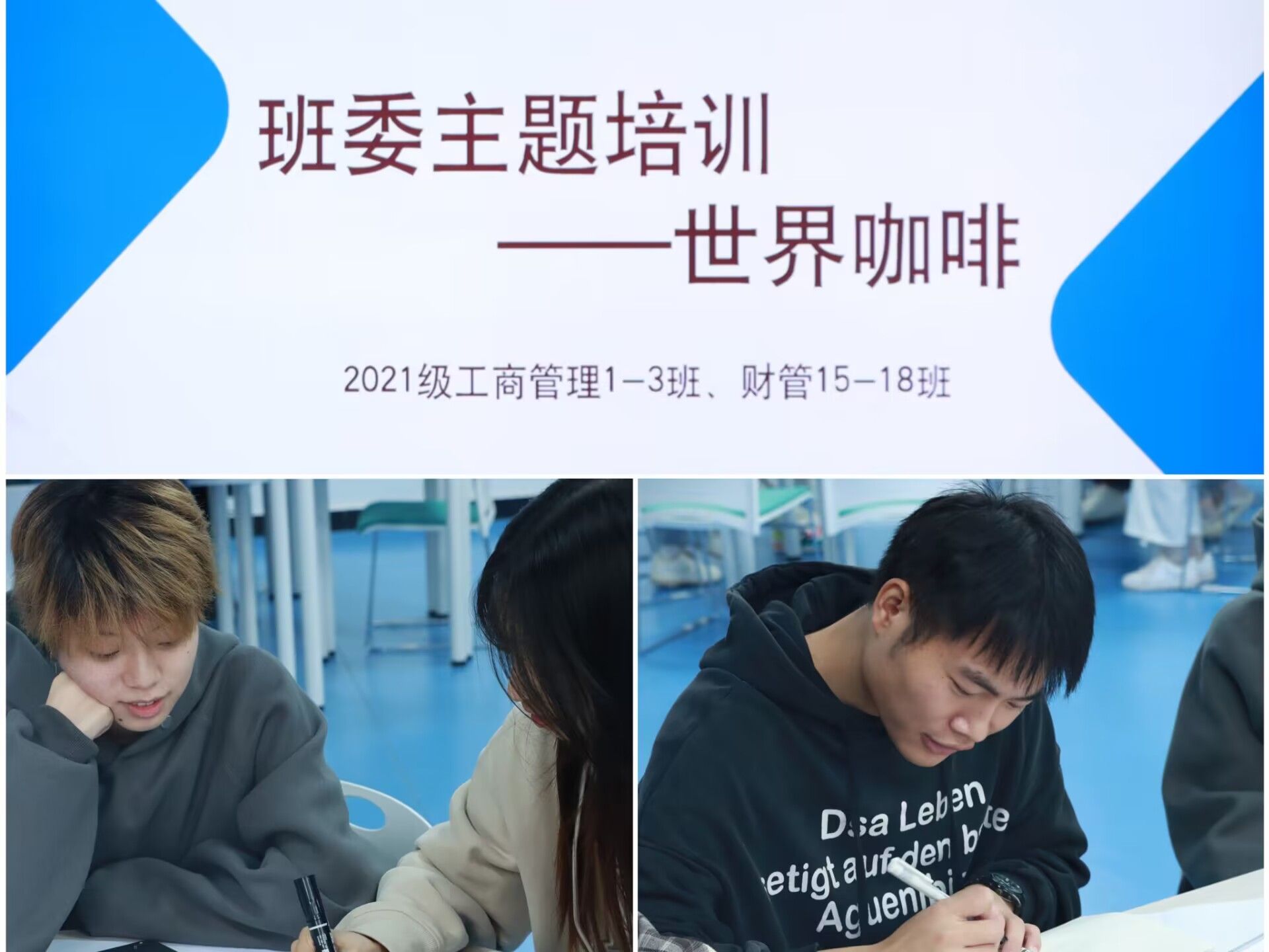 为进一步强化班团建设,铸就坚实的凝聚力之墙,助推年级发展,促进基层班团标规范化、个性化建设。淬炼商学院辅导员叶洵老师于2023年10月11日16点在5201开展了以“世界咖啡‘跨界融合’”为主题的班委培训会。此次培训会通过世界咖啡的形式,生动形象地将问题研讨具象化,细化创造过程,引导协作对话,丰富组织形式。2021级工商管理1-3班、财务管理15-18班全体班委参与其中。