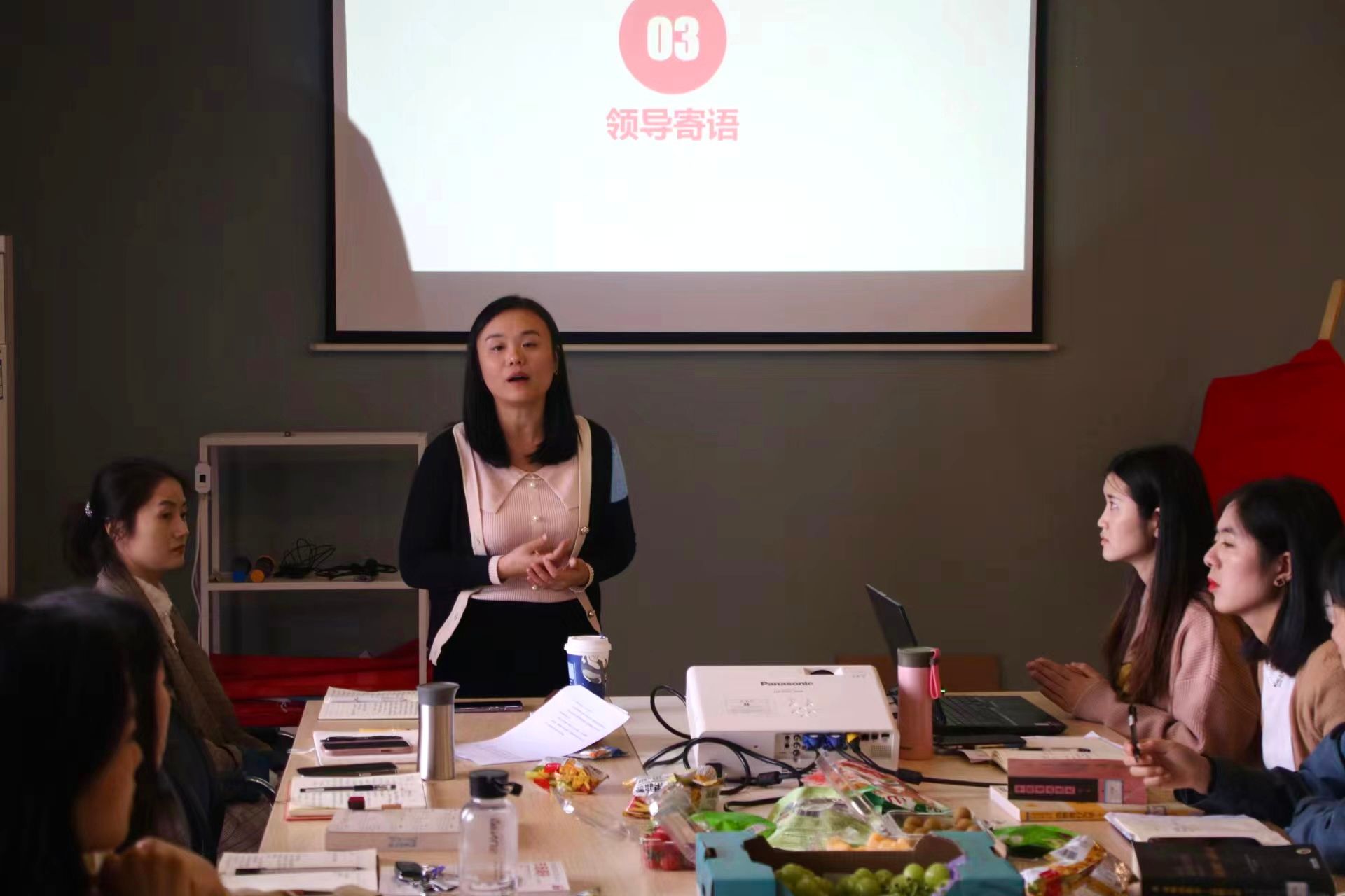 学校心理健康教育中心主任田雨老师作为工作室的专家指导,对于微光育人工作室未来的工作提出了指导,她将学校心理健康教育工作进行了一一介绍,并对未来的重点工作方向进行了指引,老师们要以“时时放心不下”的责任感,紧密结合当前学生心理健康现状和发展趋势,全面加强和改进新时代学生心理健康工作。