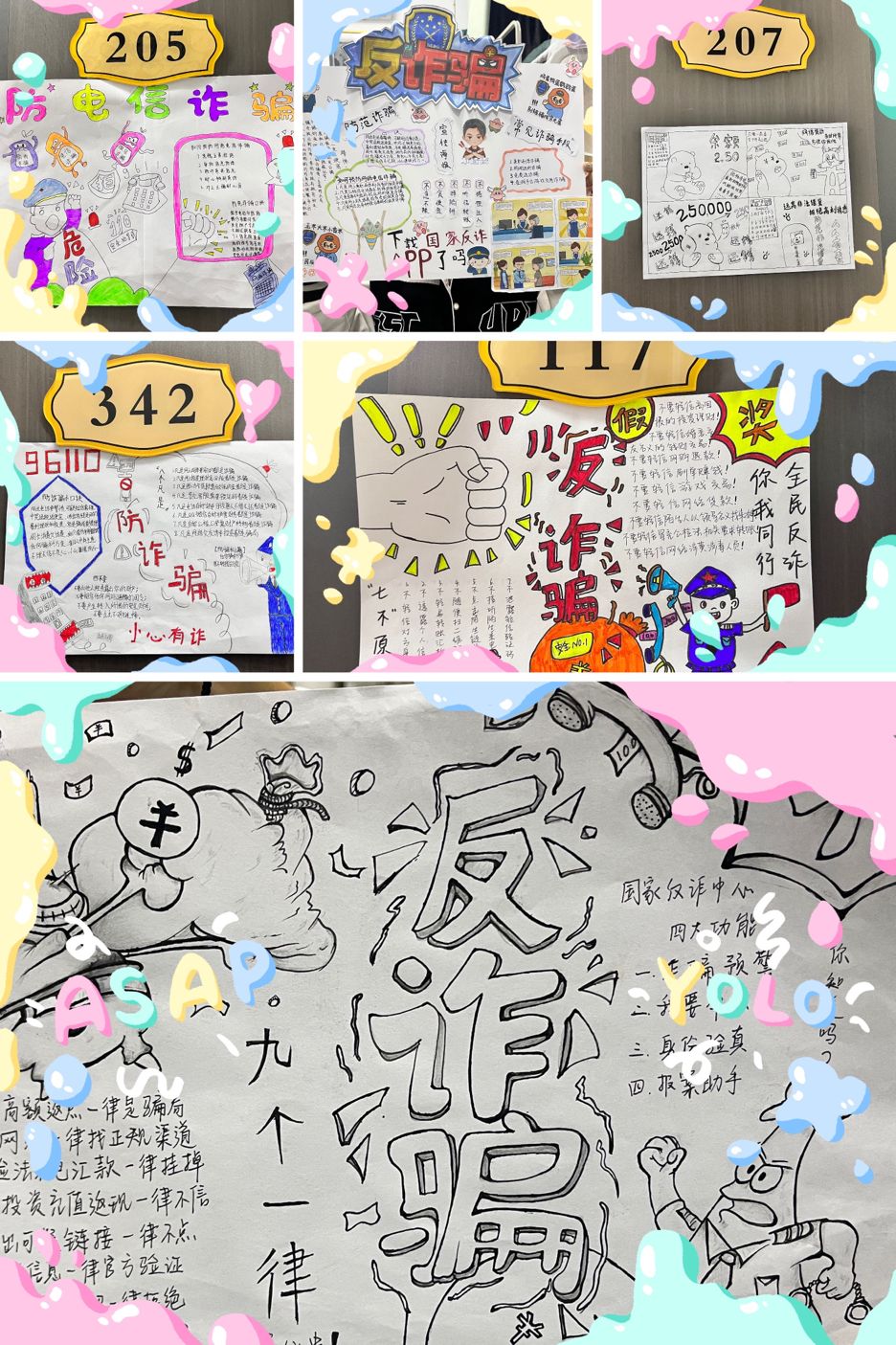 为丰富反诈宣传方式,创新性推动反诈宣传进寝室。鼓励同学们以寝室为单位进行反诈元素创作,通过反诈宣传手绘图、创意海报、反诈vlog等多种形式展现大家对于反诈宣传的独特思考。本次活动共收集到15个寝室的作品,这些作品中有同学们自编自演的反诈宣传vlog,有内容丰富、技巧满满的反诈宣传手绘图,还有色彩鲜艳,引人警醒的反诈宣传海报。这些作品流露出同学们的创造力,更为反诈宣传提供了更多途径。